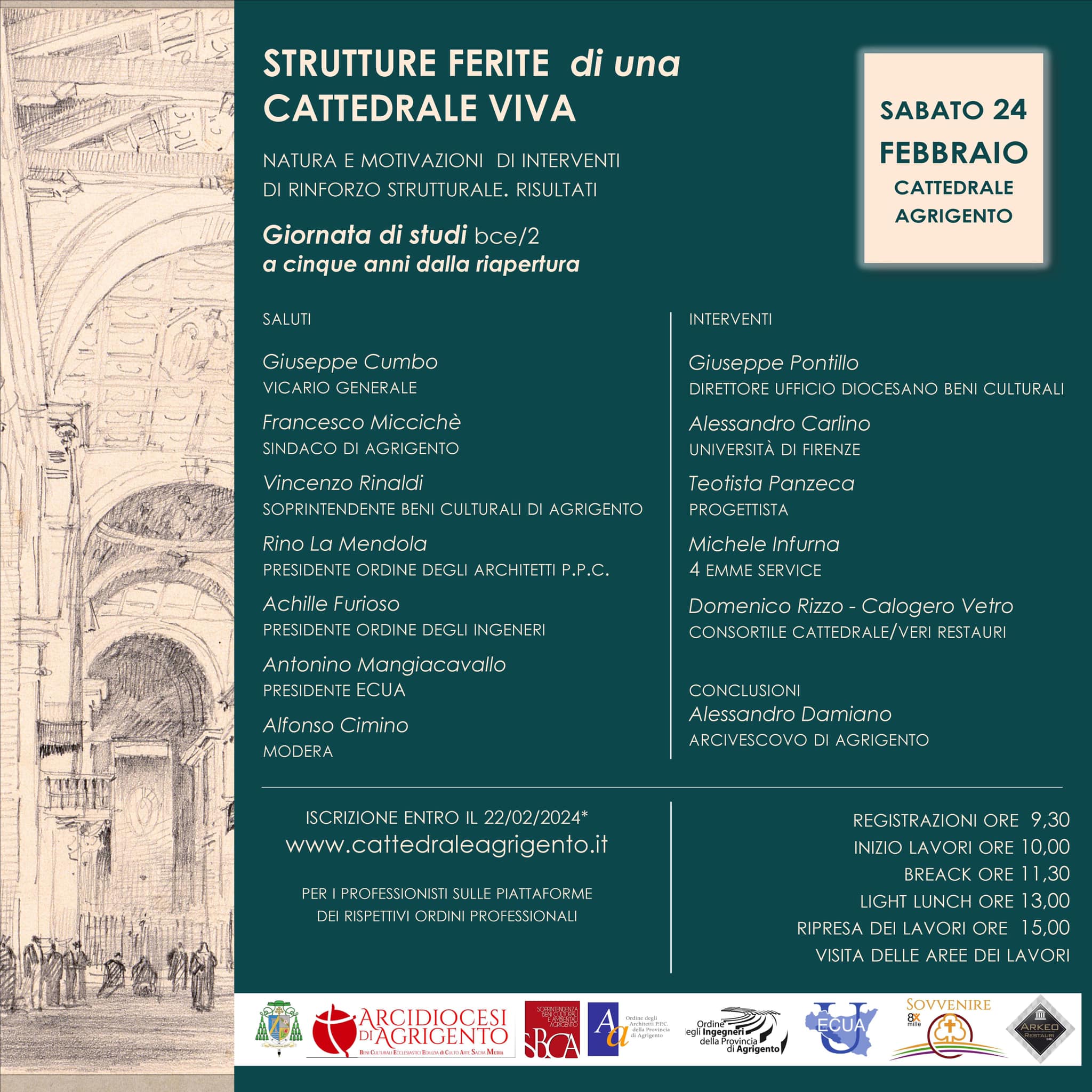 A margine della Giornata di Studi del 24 febbraio 2024 su: “Strutture ferite di una Cattedrale viva. Natura e motivazioni di interventi di rinforzo strutturale” (vedi), a 5 anni dalla messa in sicurezza della Basilica Cattedrale di Agrigento, durante la quale sono stati presentati i lavori al termine del progetto redatto, su incarico dell’Arcidiocesi di Agrigento, dal prof. Teotista Panzeca e realizzati alla stessa percentuale con fondi della Regione Siciliana e dell’8xmille alla Chiesa Cattolica e dell’Arcidiocesi di Agrigento. I lavori,  che hanno portato alla riapertura al culto e alla fruizione turistica della Cattedrale, dopo 2920 giorni (8 anni) sono stati ripercorsi in una sintesi per immagini , dal nostro direttore, Carmelo Petrone, con gli scatti, tratti dal suo archivio.  Il video offre un racconto per immagini dello stato in cui versava la Cattedrale negli anni della chiusura, un tempo di oltre 8 anni che ha segnato la storia della Chiesa agrigentina.