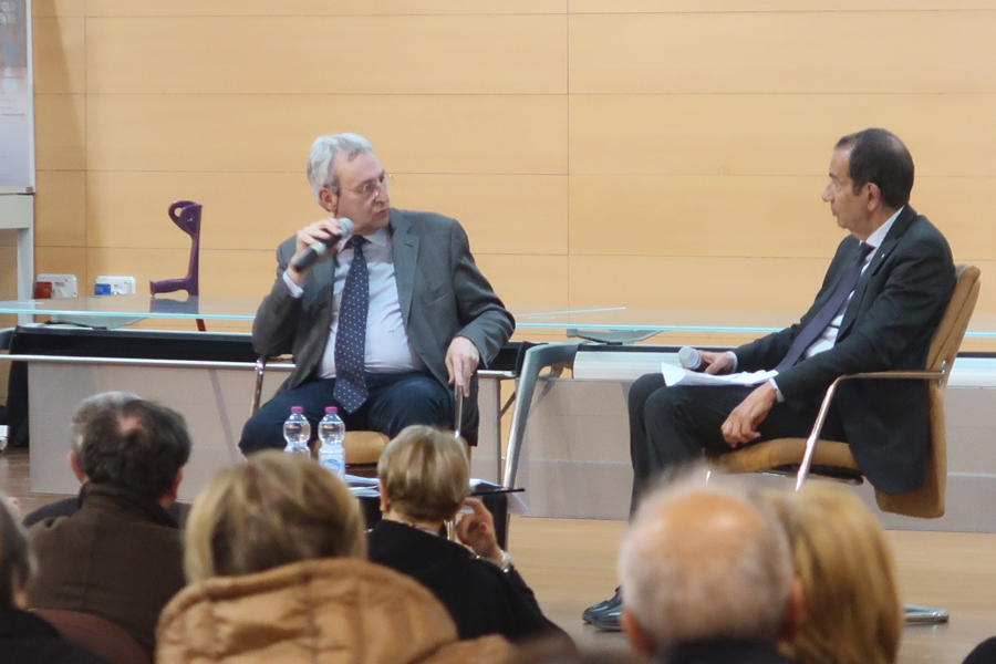 Il prof. Roncalli nel suo intervento, attingendo a documenti, lettere e ai diari privati di papa Giovanni XXIII ha messo in evidenza come l’Enciclica, indirizzata per la prima volta “a tutti gli uomini di buona volontà”, segna uno spartiacque nella concezione della pace da parte della Chiesa; un testo attualissimo – scritto in un contesto internazionale sull’orlo di una guerra nucleare – anche se ancora non pienamente recepito come dimostra la situazione internazionale. Ha inoltre evidenziato la capacità di Giovanni XXIII di scorgere i segni dei tempi, il suo impegno per la soluzione pacifica di tutte le guerre attraverso il dialogo e il disarmo e la ferma condanna di ogni guerra facendosi voce di un bisogno di tutta l’umanità, che è ancora quello dei nostri giorni. Giovanni XIII scrisse – ha ricordato il prof. Roncalli – che “la pace rimane solo suono di parole, se non è fondata su quell’ordine che il presente documento ha tracciato con fiduciosa speranza: ordine fondato sulla verità, costruito secondo giustizia, vivificato e integrato dalla carità e posto in atto nella libertà”.