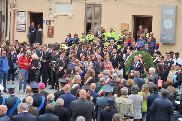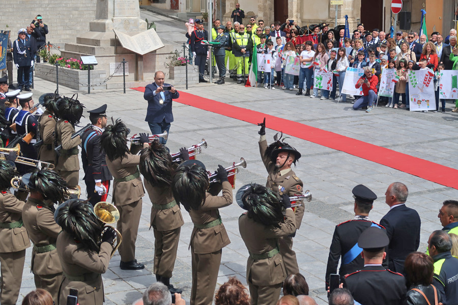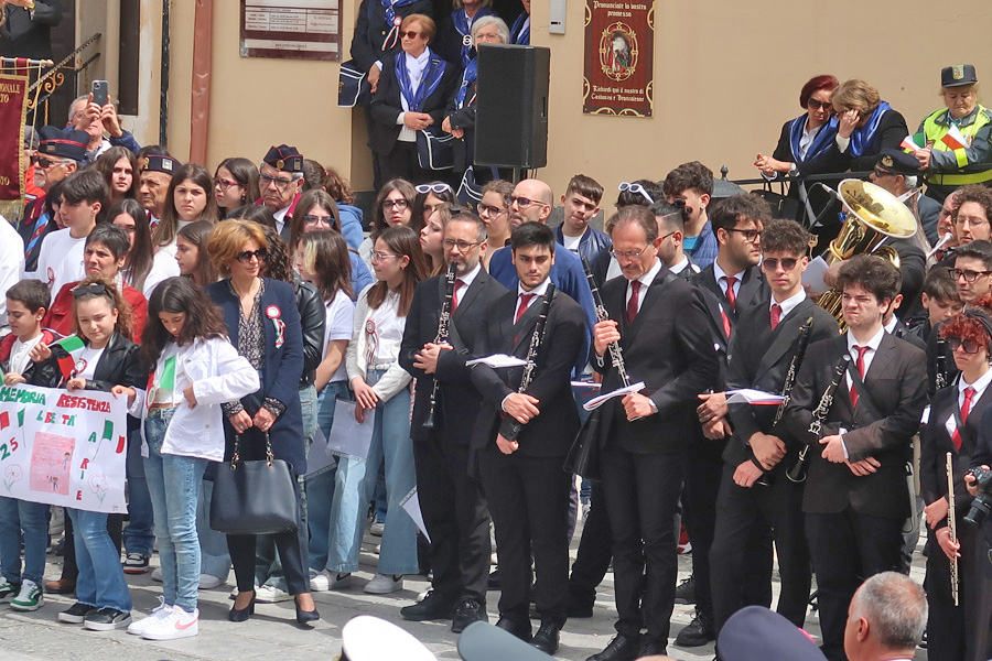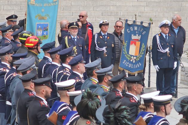 Si è svolta oggi, 25 aprile 2024, a Siculiana la cerimonia provinciale per il 79° anniversario della liberazione dell’Italia dall’occupazione nazista e dal regime fascista. Prima della cerimonia in piazza, nel Santuario del Santissimo Crocifisso l’Arcivescovo, Alessandro Damiano, ha presieduto la Santa Messa alla presenza dei cittadini di Siculiana, delle autorità civili e militari del territorio e di numerosi cittadini. Al termine, in Piazza Umberto I, si è svolta la tradizionale cerimonia militare alla presenza del prefetto di Agrigento, Filippo Romano, delle Autorità civili e militari della Provincia e delle rappresentanze delle Forze Armate, delle Forze di Polizia, di soccorso , sindacali e dell’Associazione Nazionale Partigiani d’Italia (A.N.P.I.). Il momento ha visto la partecipazione della Fanfara del 6° Reggimento Bersaglieri di Trapani con l’esecuzione di brani che hanno accompagnato i momenti della deposizione della corona di alloro davanti il