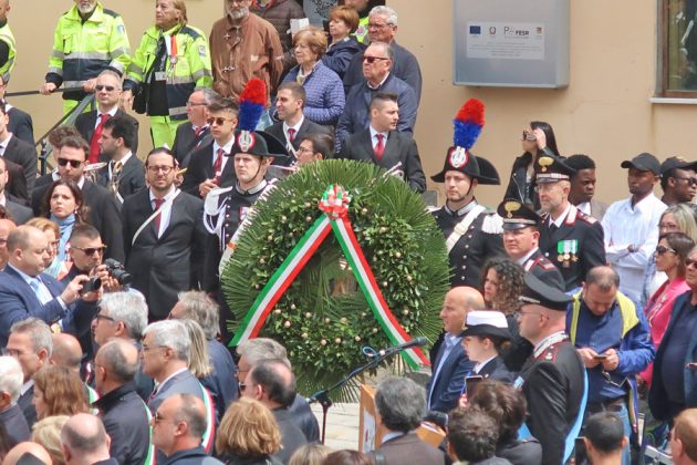 La lettura del messaggio del Ministro della Difesa, Guido Crosetto, ha preceduto l’intervento del Prefetto Romano che ha messo in risalto come il 25 aprile sia stato la conclusione di un lungo percorso di libertà che ha portato alla liberazione dal nazifascismo e come, militari e civili, hanno saputo far fronte comune per una sola causa.
