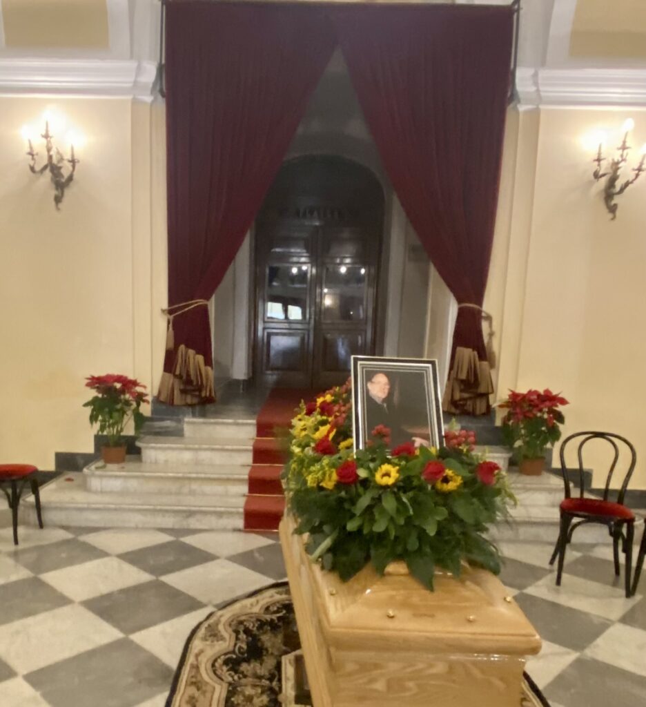 In questi giorni numerosi sono stati i ricordi personali e gli attestati di stima, per l’uomo, l’amico e il professionista che per decenni è stato anima culturale di tante iniziative musicali e teatrali in città e non solo. In tanti si sono messi in fila per rendergli un omaggio silenzioso, nella camera ardente allestita nel foyer del teatro Luigi Pirandello (foto a destra) di cui fu sovrintendente per 12 anni. Appassionato di musica jazz e in particolare del musical; per decenni ha educato intere generazioni al bello attraverso l’arte della musica e del teatro. Sono sue le musiche e gli arrangiamenti de “I Promessi Sposi – Opera Moderna”, con la regia di Michele Guardì, uno spettacolo che dieci anni fa ebbe grande successo in tournée nei teatri di tutta Italia e nella Valle dei Templi. Flora ha iniziato la sua carriera musicale con alcune opere come Ulisse, Orfeo, un Romeo and Juliet in dialetto siciliano, la storia d’amore tra un ragazzo ebreo e una ragazza musulmana, e Nela e Sahabin, altra storia d’amore basata su una leggenda rappresentata in Italia e all’estero in alcuni teatri lirici. I funerali di Pippo Flora sono stati celebrati sabato 22 gennaio nella chiesa San Domenico. A stringersi attorno alla famiglia gli amici, i colleghi, le autorità civili, il Consiglio di Amministrazione del teatro.