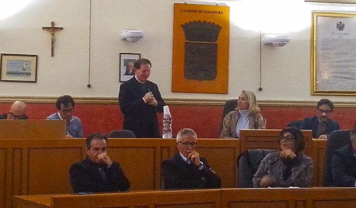 Infine don Angelo Chillura ha ringraziato l’Amministrazione e il Consiglio Comunale per “l’attenzione e la delicatezza” che hanno avuto nell’esprimere il riconoscimento: “Tanti pensieri mi vengono in mente- ha detto visibilmente commosso- vorrei partire da una coincidenza con il brano del Vangelo proclamato oggi; Gesù conclude il suo insegnamento dicendo così: “quando avete fatto il vostro dovere dite: siamo servi inutili”. Servi inutili sta ad indicare che quello che si fa lo si fa per pura gratuità, per il piacere di rendersi utili agli altri. Un atteggiamento di chi vuole fare cose in maniera generosa per il bene della comunità. È questa la motivazione che mi ha spinto in questi anni. Fin dal primo giorno ho usato la parola Noi aragonesi! Dovunque io vengo inviato a svolgere il mio servizio pastorale, ho il compito di incarnarmi in quella comunità. Ho fatto un cammino con gli Scout il cui fondatore Lord Robert Baden Powell, diceva: “Prova a lasciare questo mondo un po’ meglio di come l’hai trovato e quando arriva il tuo momento per morire, tu puoi morire felice nel sentire che in ogni caso tu non hai perso il tuo tempo ma hai fatto del tuo meglio”.