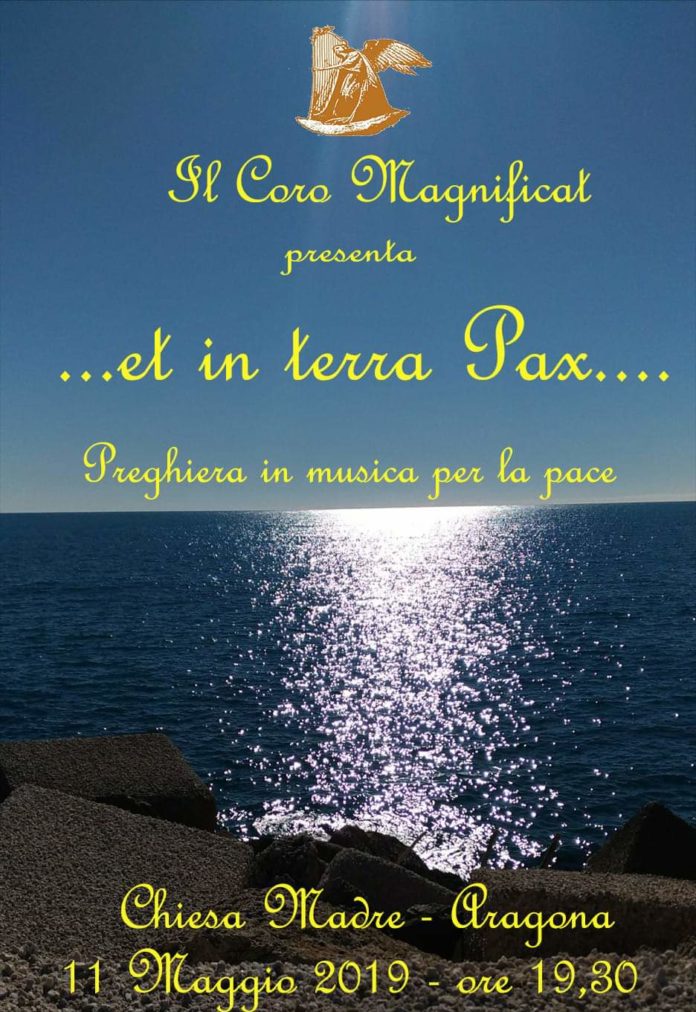 Nell’ambito dei festeggiamenti per i 25 anni di fondazione, il Coro Magnificat di Agrigento sabato 11 maggio, alle ore 19.30, nella Chiesa Madre di Aragona, si esibirà nel concerto “…et in terra pax”.