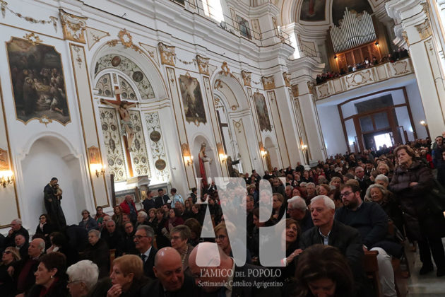 “Fratelli e sorelle carissimi – ha annunciato il diacono –  in data 19 maggio 2020 ricorrerà l’80° Anniversario dell’incoronazione della statua dell’Immacolata da parte del Capitolo Vaticano, effettuata nel 1940 dal Card. Lavitrano nella nostra Chiesa Cattedrale, invocata come Regina della Diocesi di Agrigento. Il Consiglio Pastorale Parrocchiale, riunitosi lo scorso 29 ottobre proponeva e consegnava la richiesta di un Anno Mariano al nostro Padre Vescovo Francesco. Egli, avendo accolto con gioia tale proposta, il 3 novembre, memoria di S. Libertino,  primo vescovo di Agrigento, la inoltrava alla Penitenzieria Apostolica.