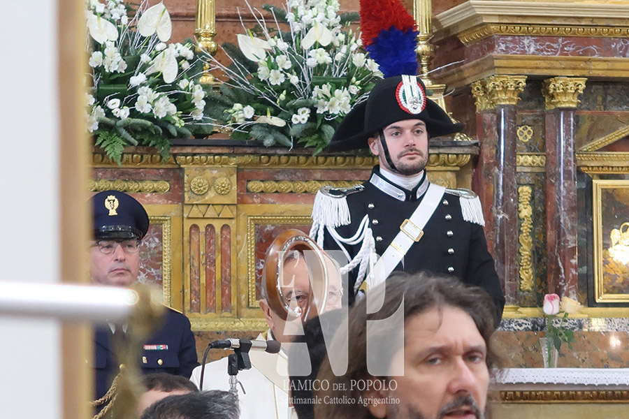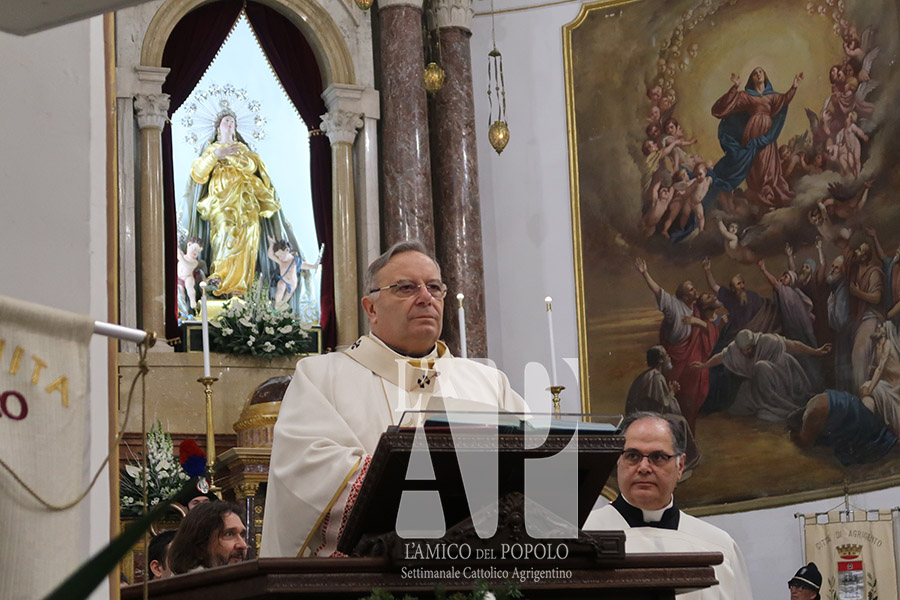 Nell’omelia (vedi), l’Arcivescovo, commentando il vangelo della Annunciazione e parlando della Beata Vergine Maria ha detto:  “Maria è una donna riuscita!… La sua vita non è stata straordinaria ma uguale a quella delle sue contemporanee: badava alla casa, cercava lavoro per Giuseppe e Gesù, si riforniva d’acqua e teneva acceso il fuoco. Coltivava l’orto o andava a lavorare nei campi, cucinava seguendo le prescrizioni della legge, si occupava dei vestiti…  La sua è stata una vita semplice resa straordinaria dal fatto di essere piena di Dio e aperta agli uomini. Ciò che il Vangelo ritiene essenziale per chi crede in Dio – ha proseguito –  lo ritroviamo in Maria. È stata sempre in ascolto di Dio che parla nella Parola scritta, nella storia, negli uomini, e, tra questi, in primo luogo, negli umili e i poveri…  Il suo sì – ha detto – è di esempio per noi. E citando Papa Francesco ha proseguito: “Dio ci sorprende sempre, rompe i nostri schemi, mette in crisi i nostri progetti, – e ci dice: fidati di me, non avere paura, lasciati sorprendere, esci da te stesso e seguimi! “… “Maria – ha detto don Franco –  ci dà da pensare. Tanti oggi si dicono cristiani, ma probabilmente lo dicono dimenticando cosa significhi esserlo. Si accontentano di una qualche conoscenza di Cristo, di qualche frase del Vangelo conosciuto da piccoli, qualche frase che si ripete come fosse un proverbio, qualche elemosina ai poveri. Questa, in verità, più che fede è una forma di indifferenza religiosa, tinta di parole e di figure prese in prestito dal Vangelo, che serve solo a sentirsi la coscienza a posto; tanto da aver ridotto Gesù al ruolo di factotum, di guaritore, di 113, dimenticando che lui è il maestro. Il cristianesimo, invece, è vivere secondo quanto Gesù insegna. La nostra – ha proseguito –  sta diventando sempre più una fede fatta di cose, di immagini e di riti, di strutture senz’anima e senza vangelo legate a un passato e a una religione che trascina abitudini che non dicono nulla soprattutto ai giovani d’oggi. Non è questo – ha affermato –  il vero volto della fede cristiana. Il cristiano, se sta alla scuola di Dio, ne ascolta la parola che, sola, aiuta a leggere e giudicare la vita e ad andare incontro al nuovo, senza però dimenticare ciò che è stato importante nel passato. L’amore non si alimenta di nostalgia, quando c’è, genera stupore. Gesù stesso dice che il vero discepolo «è simile a un padrone di casa che estrae dal suo tesoro cose nuove e cose vecchie» (Mt 13,52)… Lasciamoci – ha detto ai presenti –  sedurre da Gesù (cf Ger 20,7) e non vergogniamoci di essere considerati suoi amici. Il cristiano è una persona mai soddisfatta, bruciata dall’amore per Gesù, che non si preoccupa di seguire le mode, di giudicare secondo la mentalità generale del ‘lo faccio perché lo fanno tutti’, che non si lascia ingannare da proposte ed esempi che promettono successo e benessere e sono presentate come mete da raggiungere a ogni costo, altrimenti viene a mancare la felicità. Gesù è la nostra gioia. È lui che conta sopra tutto e sopra tutti. Il cristiano inserito nella storia quotidiana è desideroso di costruire un mondo più giusto e più buono, ha il coraggio non solo di fare scelte non abituali, ma di proporle agli altri. È misericordioso, apre il cuore a ogni forma di miseria e condivide la sofferenza di quanti sono succubi a scelte, spesso assassine, che regalano solo un vuoto di valori e di ideali. Avvicina le persone più deboli e povere, anche se di colore della pelle diverso dalla nostra, senza giudicarle o condannarle, e regala anche a loro la sua amicizia. Di fronte alla storia quotidiana – ha detto, esortando i presenti –  sentiamoci «mobilitati» a fare di tutto perché le cose cambino. Non fingiamo di non vedere e di non sapere. Il cristiano non può scegliere dove andare, perché Gesù già dal giorno del battesimo gli ha indicato quale è la direzione del suo cammino. Ci vuole tutti – ha proseguito –  impegnati contro l’egoismo che divora dentro; contro la mentalità fatta di aggressività, di diritti dimenticati e di dignità da difendere; contro la pigrizia che per nascondere la verità chiamiamo prudenza; contro l’abdicazione alle proprie responsabilità; contro lo scoraggiamento che porta alla rinuncia e alla fuga; contro il calcolo che fa perdere valore al proprio dono di amore. Se ci pensiamo bene, sono queste le condizioni perché la città, ogni città, la nostra Agrigento, sia vivibile e a misura d’uomo: essere buoni cristiani per essere buoni cittadini. È la via certa per scoprire la bellezza. Maria – ha concluso –  ci insegna che essere cristiani significa essere sempre impegnati a dare il meglio di noi stessi. È un cammino lungo e difficile; in un mondo sempre più pieno di personaggi anonimi, che si accontentano di trascinare la vita e non sono interessati a scoprirne il senso, San Paolo dice: «Come avete ricevuto il Cristo… in lui vivete, radicati in lui e costruendo su di lui e rafforzandovi nella fede» (Col 2, 6-7). È un cammino che ci chiede di andare controcorrente, ma è l’unico che ci ridà la bellezza e la gioia di essere uomini e ci restituisce la preziosità di quei capolavori che Dio ha voluto che noi fossimo quando ci ha donato la vita. Così come avvenne per Maria, la tutta bella!”