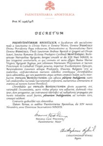Pertanto, i fedeli durante tutto l’anno, visitando la Basilica in Agrigento in forma di pellegrinaggio e dinanzi l’Immagine incoronata Regina di Agrigento, partecipando ai sacri riti, o almeno pregando umilmente Dio per intercessione di Maria per un congruo spazio di tempo per la fedeltà del popolo di Agrigento alla vocazione cristiana, per impetrare le vocazioni sacerdotali e religiose e per difendere l’istituto dell’umana famiglia, concludendo con il Padre nostro, il Credo e un’invocazione alla Beata Maria Vergine (Ave o Maria… o altra preghiera), potranno lucrare l’Indulgenza plenaria alle solite condizioni (confessione sacramentale, comunione eucaristica e preghiera secondo le intenzioni del Sommo Pontefice), applicabile in forma di suffragio anche ai fedeli defunti. Gli anziani, gli infermi, e tutti coloro i quali per legittima causa non possono uscire di casa, potranno parimenti conseguire l’Indulgenza Plenaria, se con totale detestazione di qualunque peccato e con l’intenzione di osservare, non appena sarà possibile, le tre consuete condizioni, reciteranno, di fronte ad una piccola immagine della Patrona Celeste, le preghiere sopra prescritte, offrendo i propri dolori e le sofferenze della propria vita al Signore per intercessione di Maria. Parimenti il giorno 19 maggio 2020, partecipando alla processione presso la Cattedrale e alla Celebrazione Eucaristica, i fedeli potranno lucrare l’Indulgenza plenaria alle solite condizioni; gli infermi, invece, e tutti coloro che sono impossibilitati a partecipare fisicamente a condizione che abbiano seguito con devota attenzione lo svolgimento degli stessi sacri riti mentre venivano trasmessi dalla televisione o dalla radio, potranno lucrare, a norma del diritto, l’Indulgenza plenaria. La Penitenzieria esorta vivamente il Rettore della Basilica insieme ai sacerdoti provvisti delle opportune facoltà per ascoltare le confessioni, ad offrirsi con animo disponibile e generoso alla celebrazione del sacramento della Penitenza e amministrino frequentemente la Santa Comunione agli infermi. Il Decreto ha validità per il Giubilare Anno Mariano Agrigentino e sarà affisso all’ingresso della Basilica, affinché chi la visiti  possa beneficiare dei tesori spirituali disposti dal Sommo Pontefice per questo “Anno Giubilare Mariano” straordinario”. L’Annuncio è stato colto, dai numerosi fedeli presenti in Basilica,  con grande gioia