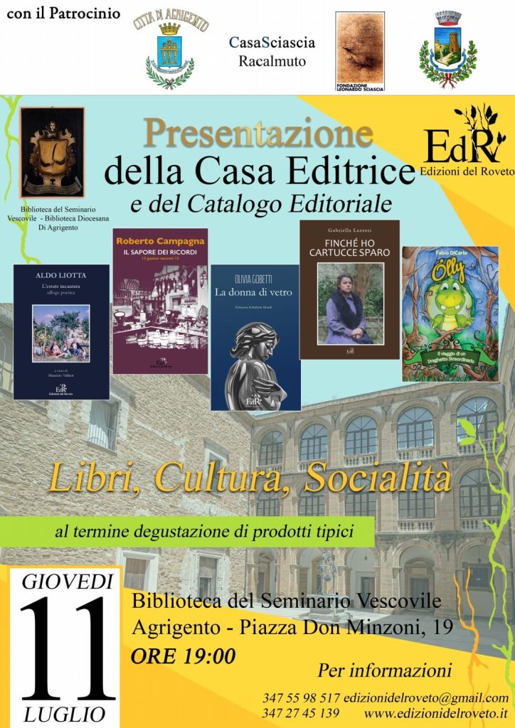 Nuovo appuntamento con libri, cultura e socialità alla Biblioteca del Seminario vescovile – biblioteca diocesana di Agrigento. Giovedì 11 luglio, alle ore 19, il chiostro del Seminario ospiterà la presentazione del catalogo editoriale e della casa editrice “Edizioni del Roveto”, che nasce su iniziativa di una famiglia siciliana fortemente legata alla propria terra e al proprio territorio.