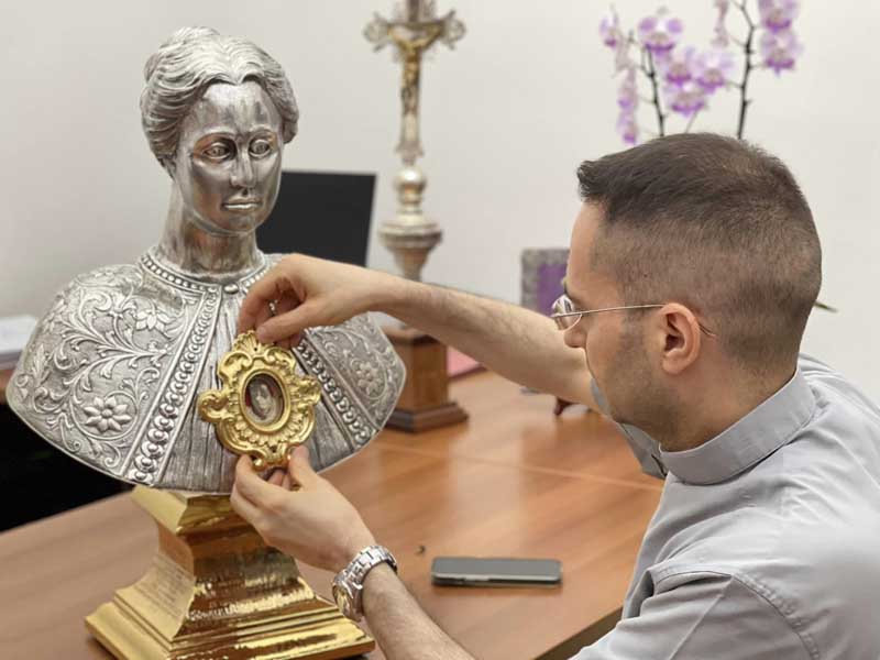 don Marco presenta il busto reliquiario