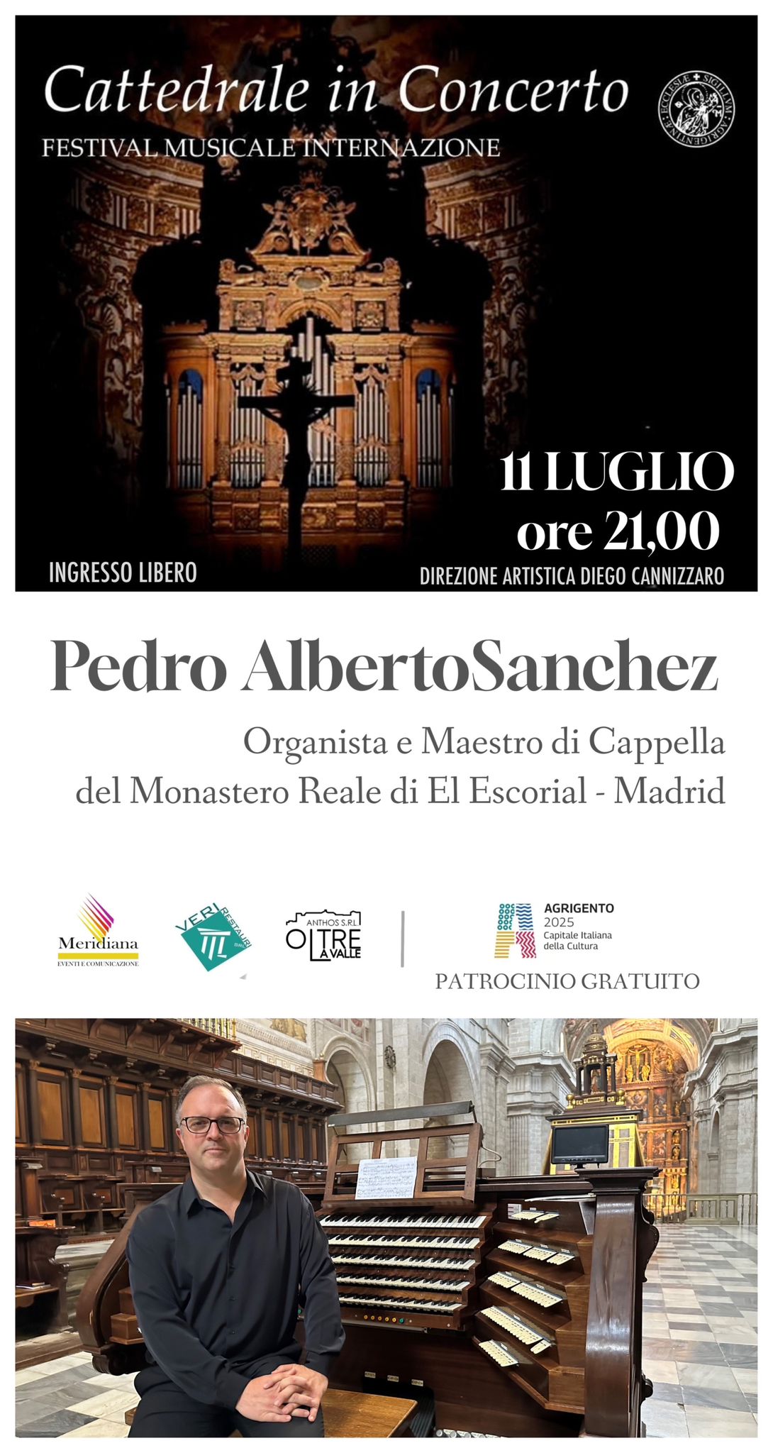 Continua la rassegna organistica Cattedrale in Concerto, direttore artistico maestro Diego Cannizzaro, organizzata dall’Ufficio Beni Culturali dell’Arcidiocesi di Agrigento con il Mudia e il patrocinio gratuito di Agrigento Capitale Italiana della Cultura 2025.