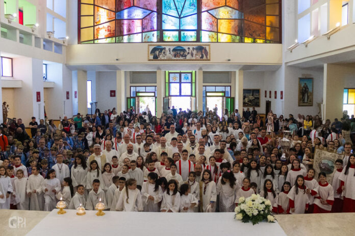 Al momento giubilare hanno preso parte anche i Ministranti, per i quali il 25 aprile è un giorno particolare perché ogni anno, da 71 anni, celebrano il Convegno Diocesano Ministranti, che quest’anno vissuto in compagnia dei ragazzi che fanno parte degli Scout (Lupetti e Coccinelle), quelli dell’ACR (Azione Cattolica Ragazzi), e tutti quelli degli oratori e gruppi parrocchiali unitamente ai loro animatori.