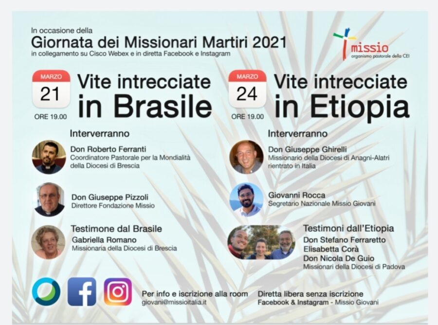 Il Centro per la missione dell’Arcidiocesi di Agrigento, diretto da don Aldo Sciabbarrasi, “per approfondire – scrive il direttore – la conoscenza del nostro essere battezzati e missionari, , propone un webnair, sulla piattaforma Cisco Webex e in diretta Facebook ed Instagram, organizzato da Missio Italia, che si terrà nei giorni 21 e 24 marzo (vedi locandina). L’ invito a partecipare – continua – è rivolto a tutti i referenti dei gruppi giovani, capi scout e referenti AC ambito giovani. A loro chiediamo – continua – di diffondere l’invito e di spronare altri giovani a partecipare. «Dove esistono poveri non ci sono reti solidali: in Italia quando scatta un’emergenza si attivano tutti i canali, in Brasile no. I risultati della pandemia nel mondo dei poveri sono disastrosi». A parlarne è Gabriella Romano, fidei donum della diocesi di Brescia, missionaria in Brasile. Gabriella – conclude don Aldo – sarà ospite insieme a don Roberto Ferranti, coordinatore della pastorale per la Mondialità della diocesi di Brescia, al primo dei due webinar, quello del 21 Marzo”.