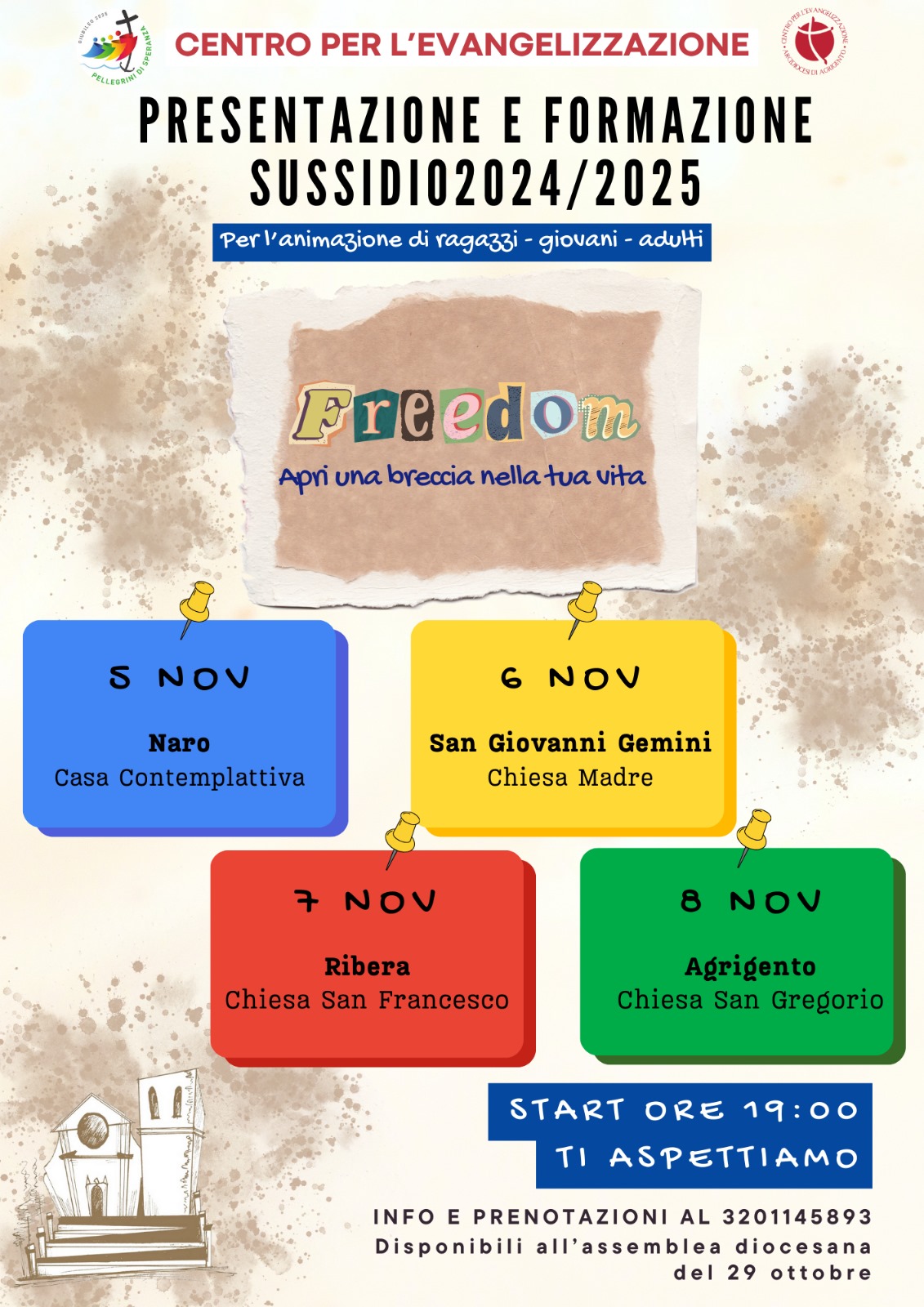“Freedom: apri una breccia nella tua vita”. È questo il titolo del sussidio per l’anno pastorale 2024/2025 elaborato dal Centro per l’Evangelizzazione (pastorale giovanile, pastorale familiare e ufficio catechistico diocesano) per l’animazione di ragazzi, giovani ed adulti.