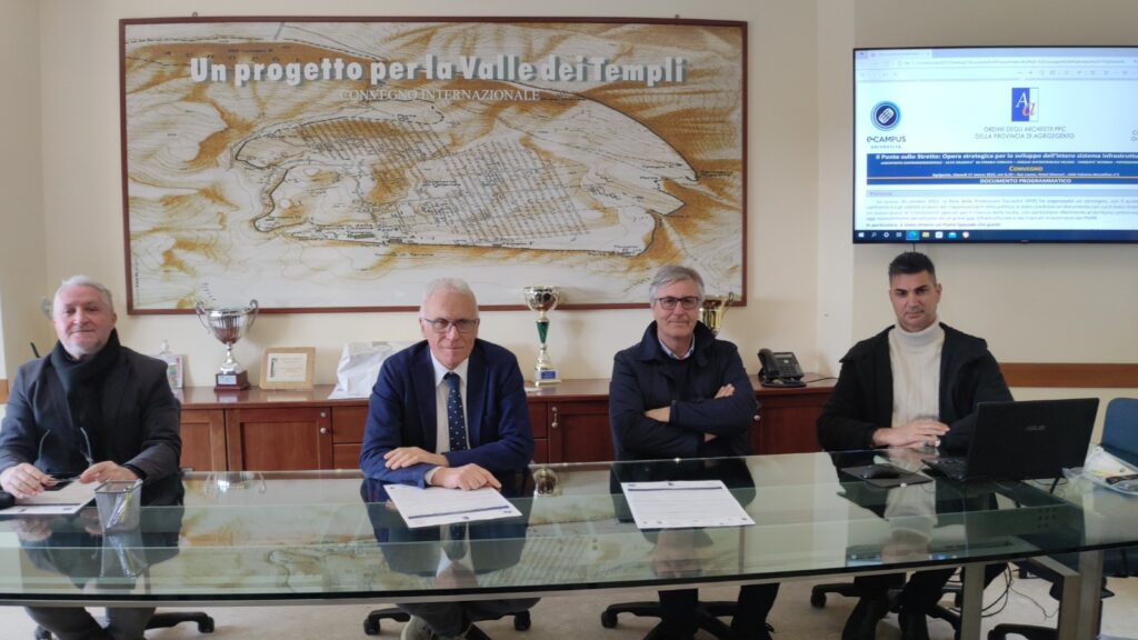 Con il nuovo evento, che segue quello tenuto dalla Rete delle Professioni Tecniche lo scorso 30 ottobre, l’Ordine degli Architetti intende ribadire e sottolineare l’importanza del ponte sullo Stretto, quale opera strategica per lo sviluppo dell’intero sistema infrastrutturale siciliano e la necessità di un nuovo piano di investimenti per le infrastrutture più importanti per il territorio agrigentino, come l’Aeroporto centromeridionale, l’alta velocità su strada ferrata, l’anello autostradale veloce, la manutenzione sulla viabilità interna ed il potenziamento dei porti”.