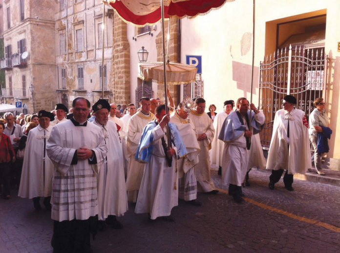 Nel regime di cristianità la processione del Corpus Domini era l’occasione di una manifestazione pubblica della fede cattolica, sulla piazza, ma oggi nella città ormai secolarizzata ciò non è sempre possibile né è sempre compreso dagli stessi cattolici. Eppure non dovremmo dimenticare il messaggio di questa festa nella sua interezza e anche nella sua portata scandalosa. Al riguardo, è utile ricordare che proprio il discorso di Gesù sul suo corpo da mangiare e sul suo sangue da bere ha scandalizzato non i suoi nemici o i suoi ascoltatori diffidenti ma proprio i suoi discepoli, che reagirono esprimendo l’intollerabilità delle sue parole e allontanandosi da lui (cf. Gv 6,60-67).