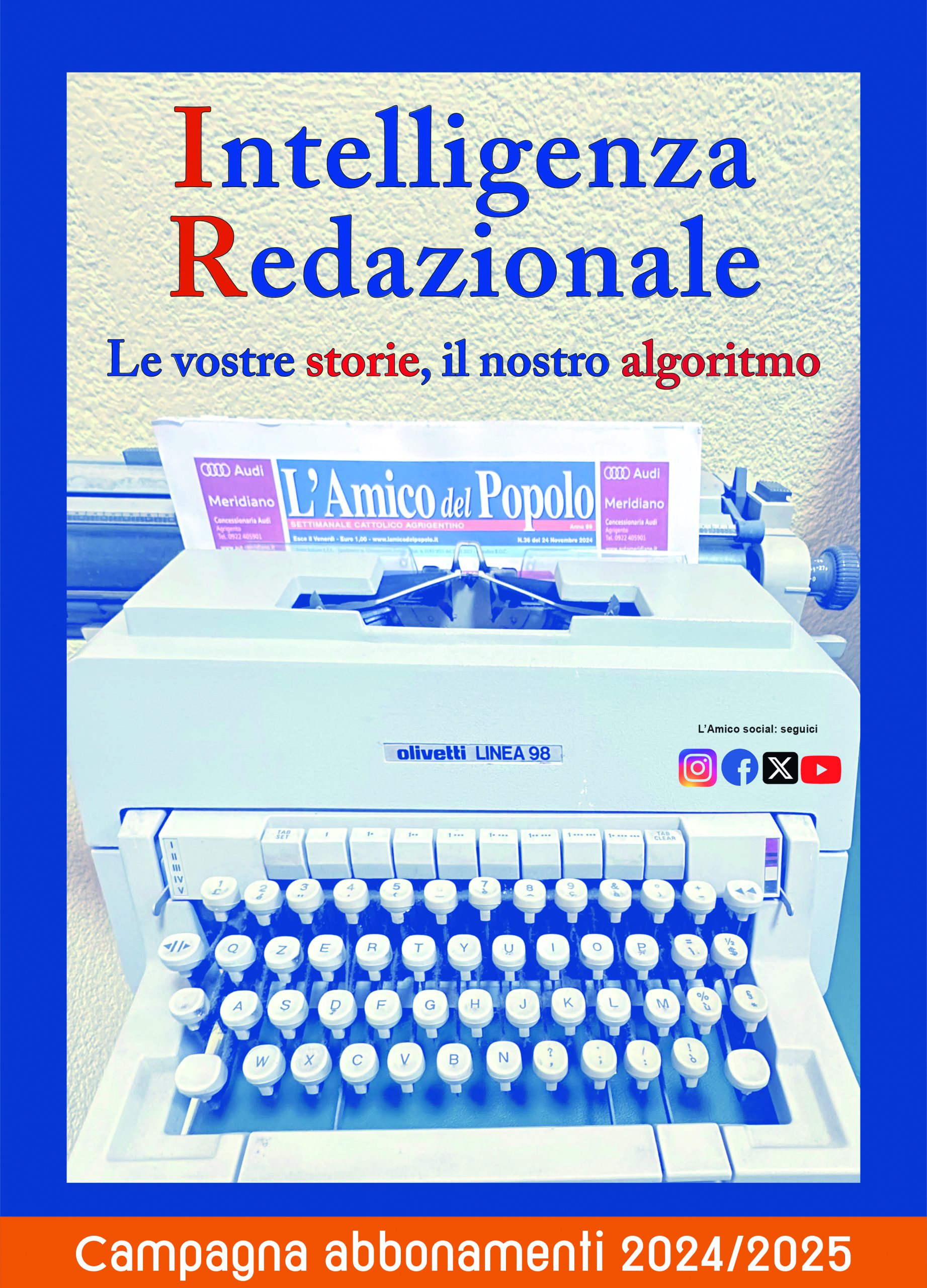 Per sottolineare questo impegno, come slogan per la Campagna abbonamenti 2024-25 abbiamo scelto: “Intelligenza Redazionale. Le vostre storie, il nostro algoritmo”.