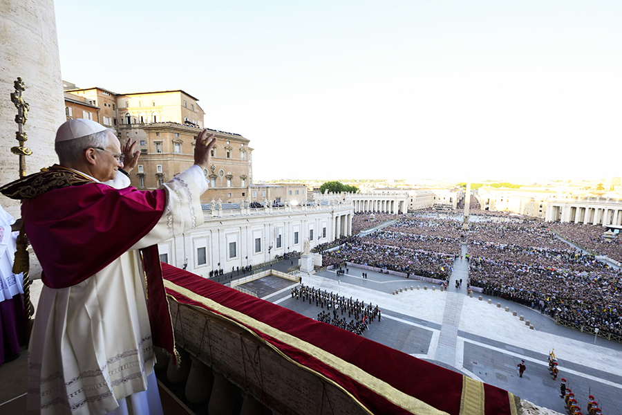 Poi l’annuncio ai fedeli in Piazza e al mondo collegato con essa, del nome da parte del cardinale protodiacono, Dominique Mamberti, del 267° Pontefice, eletto alle 18.07 al quarto scrutinio durante il 76° Conclave – il più affollato della Chiesa – da 133 cardinali elettori riuniti in Conclave nella Cappella Sistina.