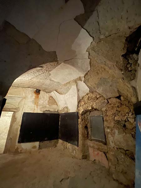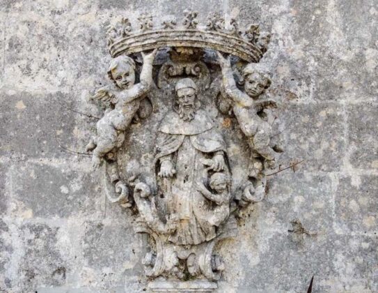 Il medaglione che si è staccato dalla facciata della chiesa