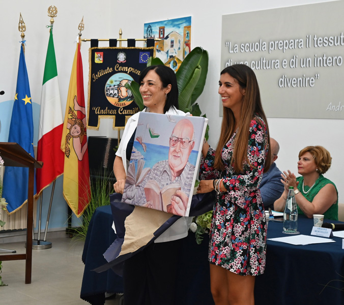 A tagliare il nastro augurale del primo istituto comprensivo intitolato alla memoria dello scrittore empedoclino è stato il Prefetto di Agrigento Filippo Romano. Subito dopo è stato scoperto un mezzobusto in bronzo raffigurante Camilleri realizzato dallo scultore Giuseppe Cacocciola.