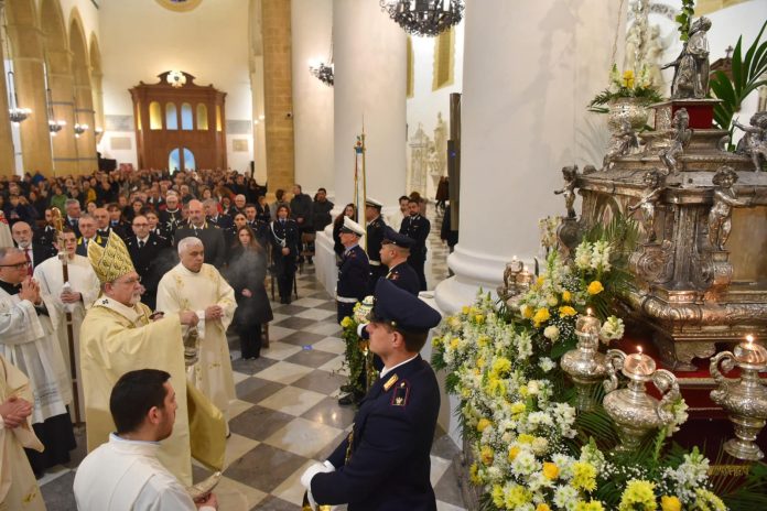 È stato celebrato lunedì 26 febbraio, alle ore 18;00, in Cattedrale, il Pontificale in onore di San Gerlando, patrono dell’Arcidiocesi e città di Agrigento. Quest’anno la festa è stata posticipata di un giorno rispetto al tradizionale 25 febbraio perché questo, cadeva la seconda domenica di Quaresima. Alla Celebrazione erano presenti il popolo fedele, le autorità civili e militari della città e del territorio agrigentino, i rappresentanti della comunità di Bivona che ha offerto l’olio per gli olii della Messa crismale e la lampada votiva che arde davanti l’urna con le reliquie di San Gerlando. Prima della messa, la Banda Musicale dell’Associazione bandistica intercomunale Bellini, attraverserà le vie del centro storico, con sosta davanti il Palazzo di città, fino alla Cattedrale, eseguendo il tradizionale inno al Patrono. A presiedere la S. Messa l’Arcivescovo Alessandro; hanno concelebrato, i