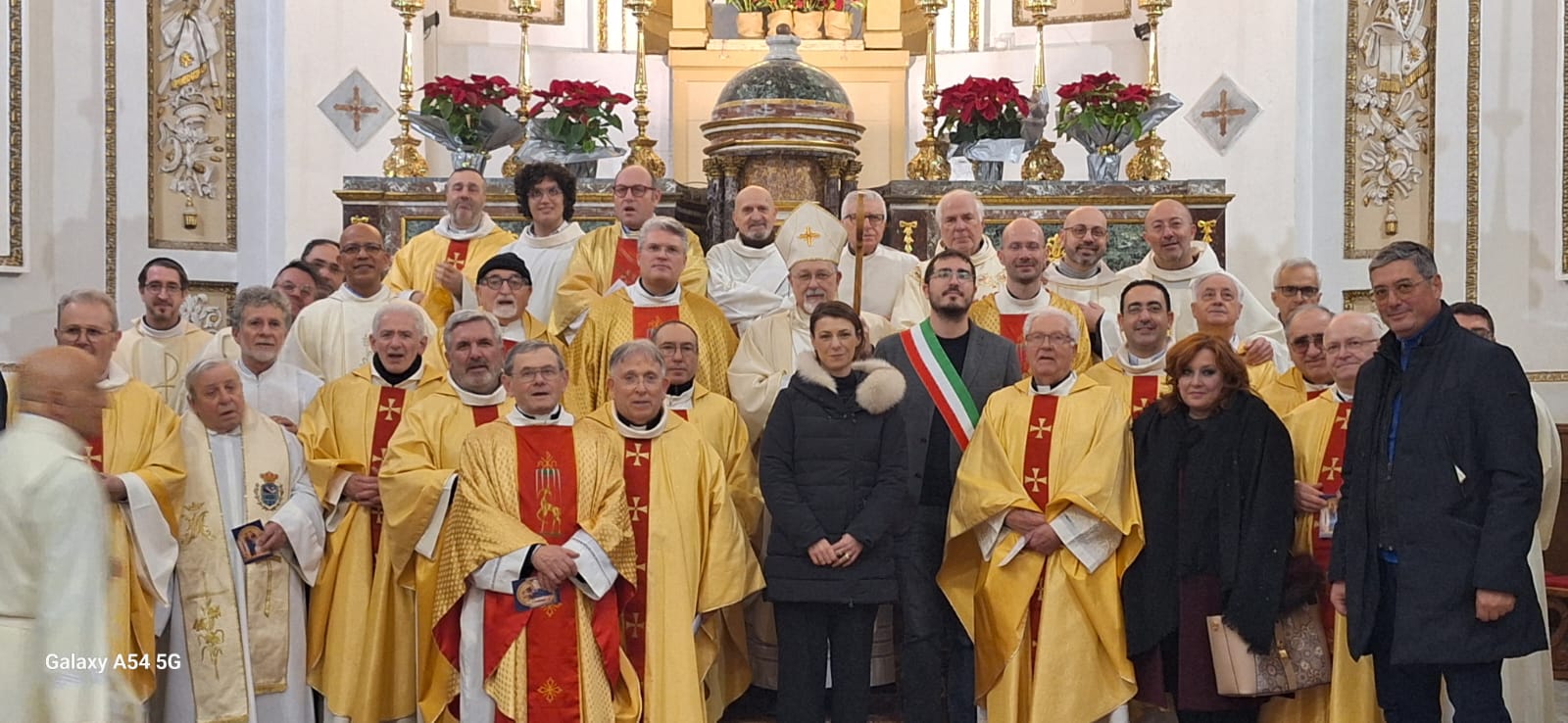 foto di gruppo al termine della celebrazione eucaristica nella matrice di Sciacca per l'inizio della visita Pastorale nella Forania (7 gennaio 2024)