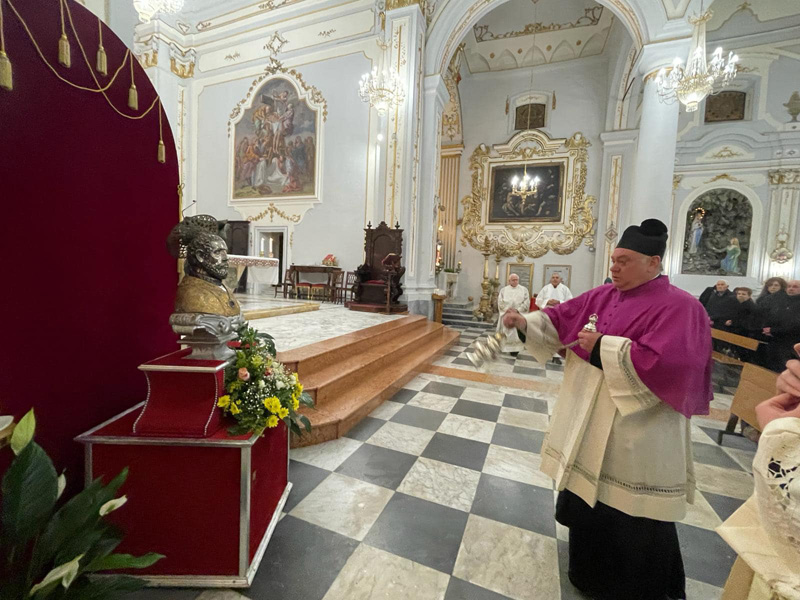 Dal 19 al 22 febbraio 2024 le comunità di Bivona (vedi qui) e di S. Stefano Quisquina hanno avuto l’onore di accogliere il busto reliquiario contenente le insigni reliquie di S. Gerlando. La peregrinatio del Santo, Patrono della nostra Arcidiocesi, ha espresso la vicinanza e la comunione da parte dell’Arcivescovo Alessandro e del Capitolo dei Canonici della Cattedrale di Agrigento in occasione dei festeggiamenti a S. Rosalia, che si svolgeranno nei due comuni nel corso dell’anno.
