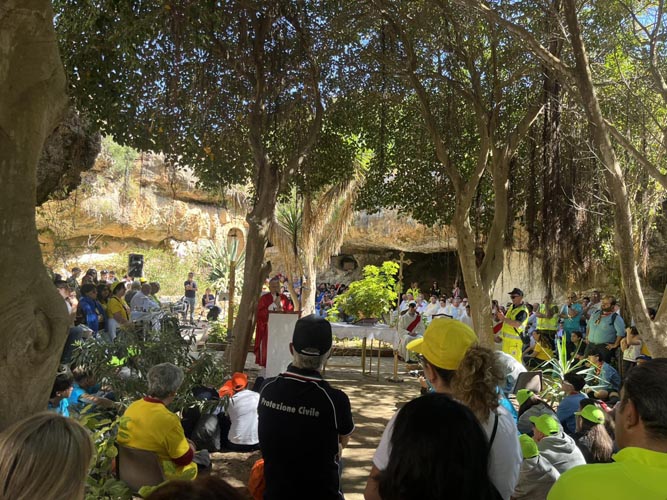 Dio è passato ed ha parlato. Bastava vedere gli occhi lucidi del vescovo davanti la porta d’Europa, ascoltando la testimonianza di Ashraf, sbarcato a Lampedusa ed ora in affido ad una famiglia stupenda di Sciacca. Bastava vedere don Leo, don Stefano e don Giorgio di nuovo nella Lampedusa che hanno servito e lavato i piedi, comunità locale che ogni volta li accoglie festosamente. Basta vedere quel raggio di sole che illumina Elena al Santuario per capire che il Signore che è passato in questi giorni per le strade dell’isola è un Dio di tenerezza, come dice papa Francesco.