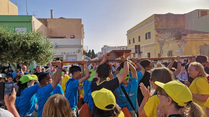 “Generazioni che si incontrano. Strade che si intersecano per costruire nuovi scenari comunitari di bellezza. È nato tutto da una semplice proposta a Don Gero di voler coinvolgere gli utenti del Centro Aggregativo Anziani in questa che ritengo essere una grande esperienza sociale per l’isola tutta. Forti delle parole di un proverbio africano, testo poi ripreso da Papa Francesco, abbiamo lanciato loro l’idea e si è scatenata la loro operosità. “I giovani corrono veloci, gli anziani conoscono la strada”. Con entusiasmo vivace e con animo carico di volontà hanno voluto creare simbolicamente per ciascun partecipante un cuoricino realizzato all’uncinetto. Posso sottoscrivere letteralmente che ci hanno messo il cuore. La conferma che Insieme si possono costruire cose meravigliose e che la socializzazione aiuta ad affrontare la quotidianità con spirito rinnovato anche in età avanzata. Nei loro occhi, ancora oggi, rimane la gioia autentica di esserci stati”. ANTONINO MAGGIORE, coordinatore/animatore progetto Centro Aggregativo Anziani “La Coccinella”- “La cosa che mi ha colpito di più di questo Giovaninfesta è stata la generosità dei miei concittadini: l’ospitalità nelle case, le donazioni di cibo, le torte fatte dalle famiglie dei bambini del catechismo! Mi ha colpito chi ha messo a disposizione il proprio lavoro come i cuochi o i noleggiatori che con i loro mezzi hanno accompagnato i ragazzi ovunque e chi invece lo ha messo da parte, il proprio lavoro, per dedicarsi a questi due giorni! Non devono sfuggire gli aiuti silenziosi, quelli che si vedevano poco ma che sono stati indispensabili. Mi ha impressionato il mare piatto, calmo, cosicché il viaggio fosse sereno! Infine, rivedo ancora oggi la luce con cui Lampedusa in tutto il suo splendore ha accolto il Giovaninfesta! Tutto sembrava disegnato, stabilito da chi il Giovaninfesta lo ha voluto a Lampedusa!” ELISA FRAGAPANE, referente volontaria.