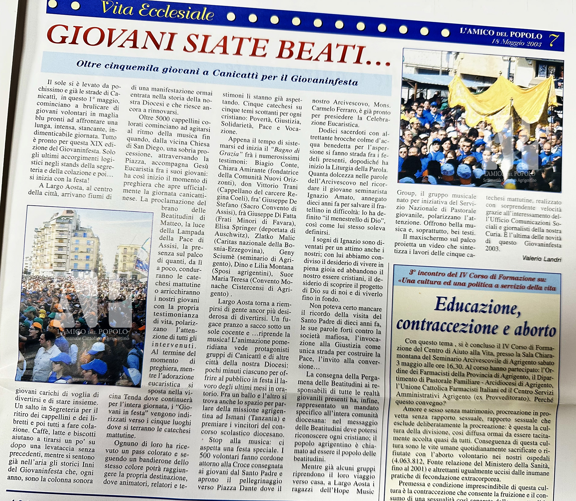 Sarà la comunità di Canicattì ad ospitare la quarantunesima edizione del Giovaninfesta (GIF) che si terrà il 1° maggio 2026. L’annuncio è stato dato al termine dell’edizione2025 oggi, 3 maggio, a LampedusaCome da tradizione, dopo la comunicazione da parte dell’Arcivescovo del nome della comunità che ospiterà la prossima edizione, si è tenuto, il tanto atteso, passaggio della “Croce dei giovani” dalla comunità di Lampedusa a quella di Canicattì. Essa è la stessa che, da 32 anni, passa, al termine di ogni Giovaninfesta, da una comunità all’altra, da quando, il 9 maggio 1993, venne consegnata da San Giovanni Paolo II agli oltre 18 mila giovani agrigentini e siciliani durante l’incontro allo stadio “Esseneto” di Agrigento. Per la città di Canicattì sarà la seconda volta, a distanza di 22 anni, come abbiamo documentato da una ricerca nell’archivio storico del nostro settimanale che dal 1891 conserva memoria stampata, di fatti ed eventi del territorio agrigentino. (leggi qui)
