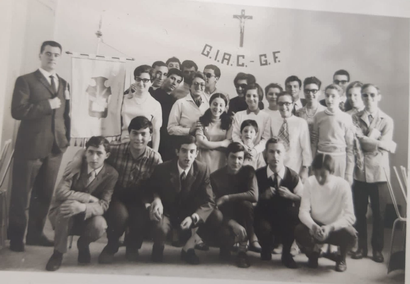 introduzione al testo curato dal prof. Scaglia – con arte e sacrificio da chi ha vissuto la fanciullezza nella gioia dei figli di don Bosco. Un monumento posto come cuore nella porta dei vènti. Un monumento che porta con se il messaggio del valore dell’educazione e della prevenzione capace di svegliare tutte le energie della persona”. Per il prof. Scaglia, il 14 giugno del 1997 (giorno della inaugurazione dell’opera) segnava una data storica per la città dei Templi sotto il profilo ecclesiale e civile. L’imponente scultura bronzea, oltre ad arredare il tessuto urbano della città ha contribuito a rivitalizzare un angolo suggestivo del centro storico che si apre al panorama, incantevole, dell’entroterra della provincia di Agrigento. Intorno agli anni ’70, inoltre, Alfredo Scaglia è stato responsabile del movimento studenti dell’Azione Cattolica, Giac -Gf, di Agrigento (vedi foto sotto).