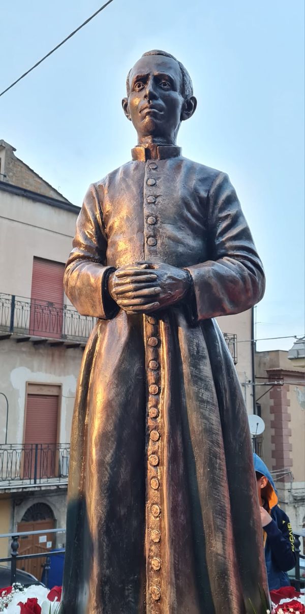 Al termine, si è tenuta la cerimonia di scopertura e benedizione della Statua (guarda il video di “Grotte.info Quotidiano”), realizzata dall’artista canicattinese Lillo Costanza. Si realizza così, uno dei più grandi desideri del popolo dei devoti di P.Vinti, che ritorna, nelle sue somiglianze fisiche, al centro della piazza di Grotte, P.zza Carmona.