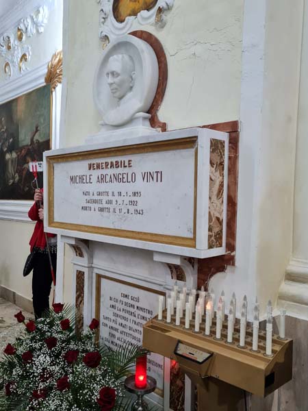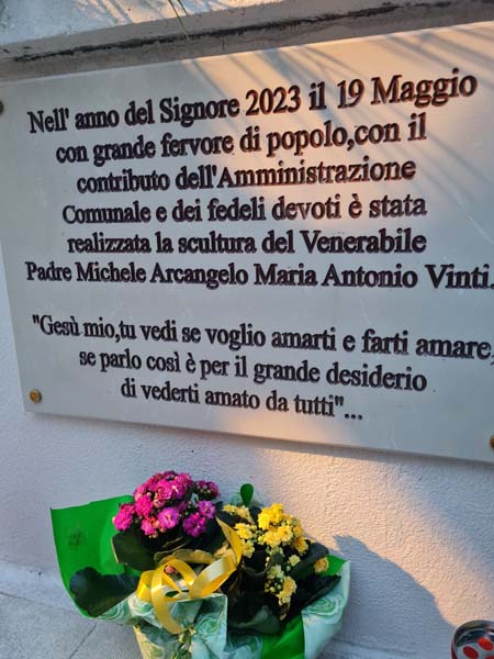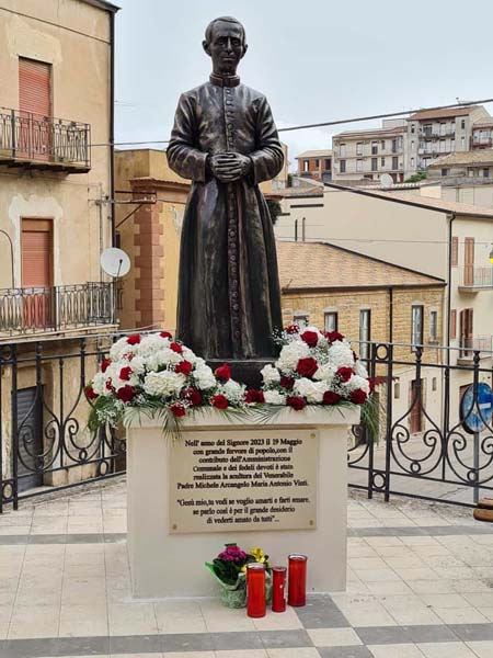 Il 19 maggio 2023, a Grotte, si è tenuta la cerimonia di inaugurazione con lo svelamento e benedizione della statua del Venerabile Padre Michele Arcangelo Maria Antonio Vinti.Un appuntamento molto atteso dai grottesi devoti e dai devoti fuori Grotte. La data del 19 maggio – come ha detto il vice postulatole della causa don Calogero Morgante – è un intermezzo di due ricorrenze, il 17 maggio si ricorda la prima comunione e cresima di p. Vinti e il 22 maggio il 2° anniversario
