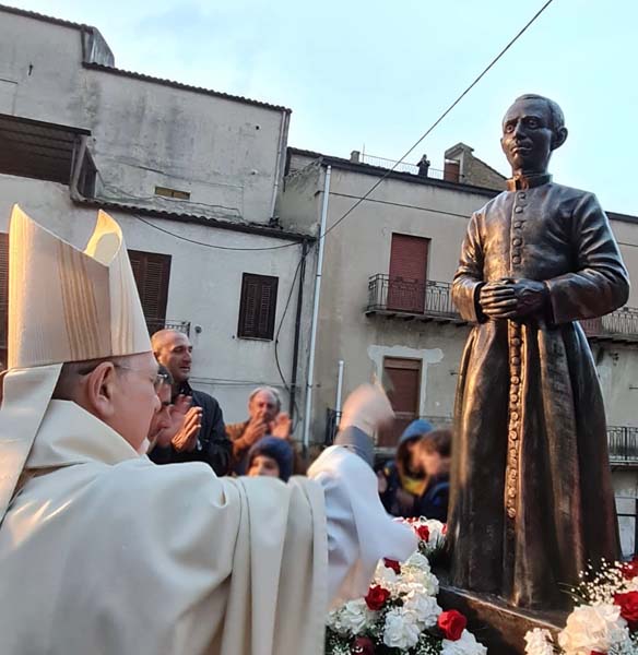 Nel suo intervento omiletico l’Arcivescovo ha ricordato come l’inaugurazione e benedizione della statua è un segno che rende, in qualche modo, visibile la presenza del venerabile tra gli abitanti della comunità di Grotte. “I segni visibili – ha detto – sono un perpetuare la memoria, re-incontrare quasi per strada gli uomini illustri, secondo quando leggiamo nel libro del Siracide a proposito dell’elogio delle persone giuste; certamente – ha proseguito – il nostro padre Vinti è da scrivere nell’elenco delle persone illustri, non secondo la logica del mondo. Padre Vinti è illustre – ha affermato – perché ha camminato dinanzi a Dio, ha camminato secondo la legge di Dio…”