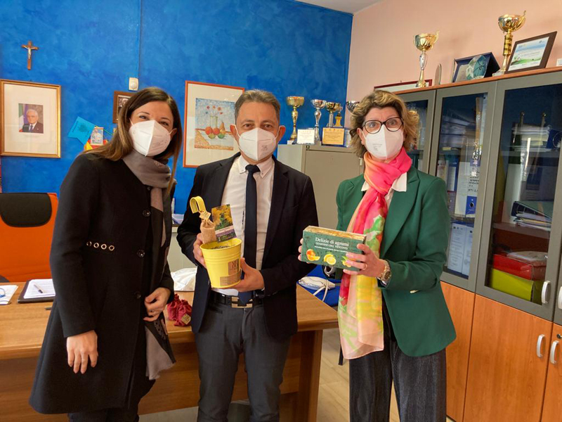 Voi ragazzi, alberi del domani, custodendo l’esempio di grandi uomini, potete comprendere che il miglioramento della società in cui viviamo è ad oggi fortemente ostacolata da una forte presenza di organizzazioni criminali a livello locale. La Direttrice del Mudia ha donato alla Scuola le marmellate prodotte con i gli agrumi del Giardino del Vescovo nel Museo, invitando i bambini e i ragazzi ad essere il frutto buono del nostro tempo non stancandosi di fare il bene per un futuro ricco di buoni frutti.