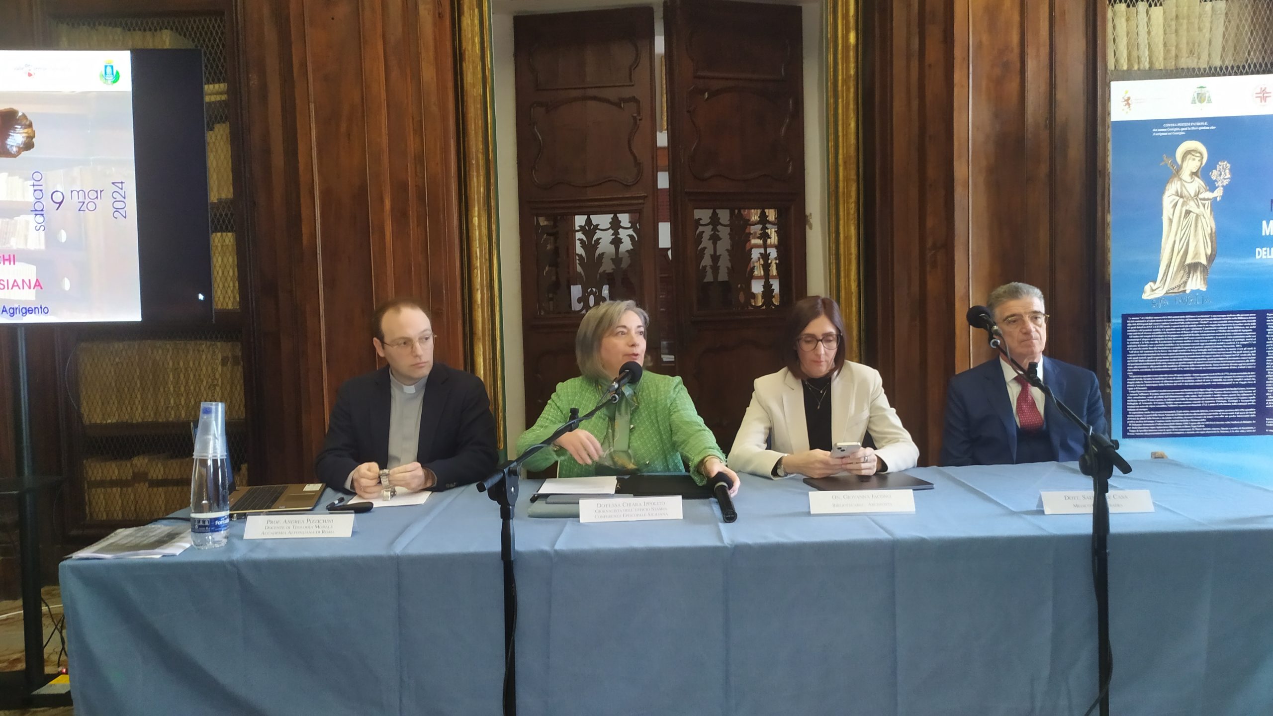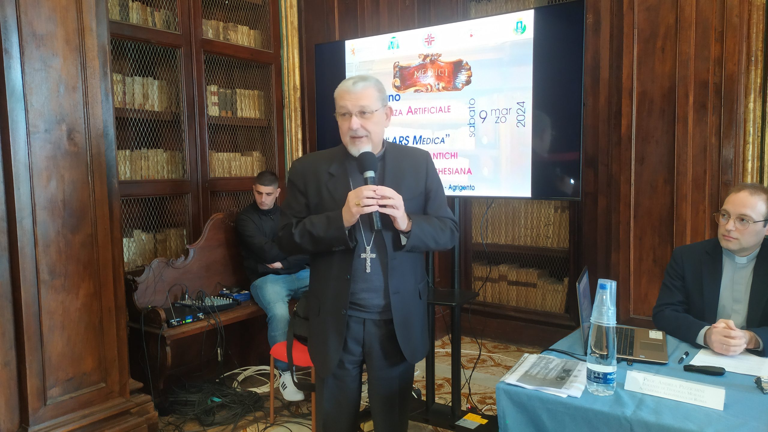 All’evento, moderato da Chiara Ippolito, giornalista dell’ufficio Stampa della Conferenza episcopale siciliana, dopo i saluti, dell’arcivescovo di Agrigento, Alessandro Damiano; del direttore della Biblioteca Lucchesiana don Angelo Chillura; del presidente di Omceo, Santo Pitruzzella; del sindaco Miccichè, innanzi a un folto pubblico hanno relazionato illustri relatori: Andrea Pizzichini, docente di Teologia morale all’Accademia Alfonsiana di Roma; Giovanna Iacono, archivista bibliotecaria, deputata al Parlamento Italiano; Salvatore Casà, medico odontoiatra.