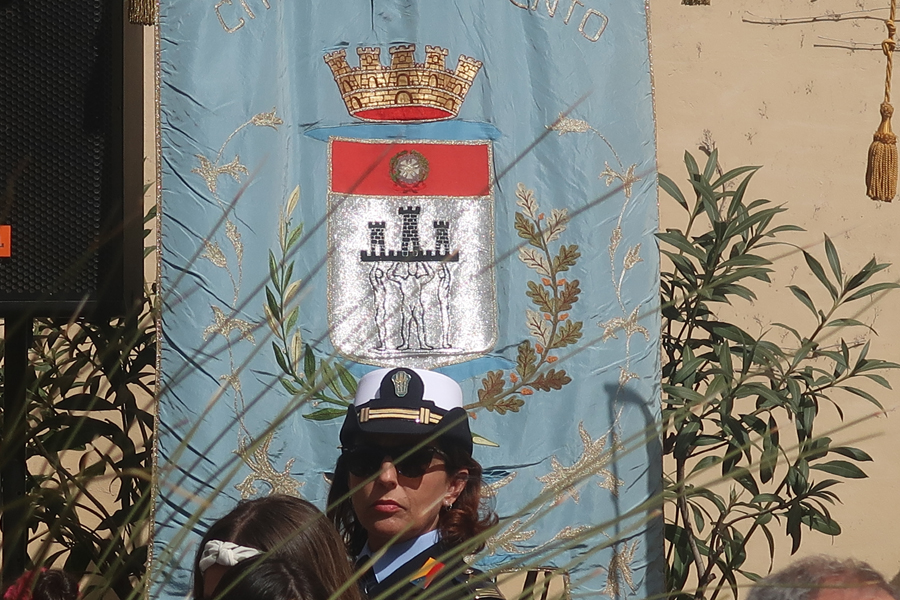 A tutti, amministratori e cittadini, desidero semplicemente ricordare che il gonfalone con lo stemma rappresenta la città. Ogni volta che viene usato, in segno di rispetto per la realtà rappresentata, due vigili, previa autorizzazione e ordine di servizio disposta dall’autorità competente,  lo “scortano” in alta uniforme, che viene generalmente indossata in occasione di cerimonie civili e religiose, in servizi di scorta alle insegne dell’Ente o ad autorità civili perché il Gonfalone rappresenta tutti i cittadini.