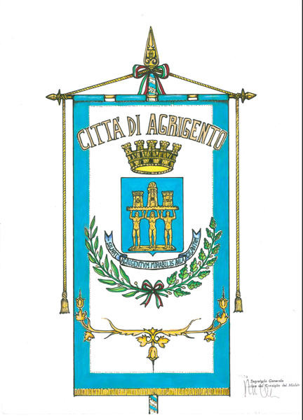 Non posso che esprimere, come ho fatto in altre occasioni, la mia indignazione perché la città di Agrigento, come detto, ha un nuovo stemma con relativo gonfalone ufficiale,  quello richiesto dal già sindaco Calogero Firetto e riconosciutole con D.P.R. del 25 novembre del 2019 (foto sotto).