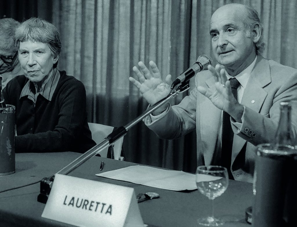Rispondo volentieri. Un rapporto straordinario. Conoscevo Enzo Lauretta per fama e, sia da studente che da giovane laureato, ne seguivo le attività culturali e le conferenze che teneva. Ero semplicemente un estimatore, assetato com’ero di apprendere. Il contatto personale è avvenuto nel 1974 in occasione di un corso abilitante all’insegnamento di lettere nelle scuole superiori: lui docente, io discente. Avrà notato, forse, il mio impegno nella preparazione dei saggi da proporre alla commissione, fatto sì che al termine del corso propose a me solo dei sessanta corsisti se volevo far parte come socio del giovane Centro Nazionale di Studi Pirandelliani (che aveva fondato nel 1967). Da quel momento è iniziata la mia meravigliosa avventura con un Autore, Pirandello, che cominciai ad approfondire, e con una Persona eccezionale, Lauretta, con cui ho condiviso 45 anni di esperienze umane, culturali e artistiche di grande rilievo.