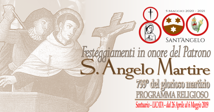 Il Santuario Diocesano di Sant’Angelo in Licata, unitamente alla Forania e al Terz’Ordine Carmelitano di Licata rendono noto il programma delle Celebrazioni in onore di Sant’Angelo Martire Carmelitano, Patrono della Città di Licata in occasione del 799° del glorioso Martirio e nella circostanza dell’avvio dell’anno in preparazione all’Ottavo Centenario del Martirio del Santo.
