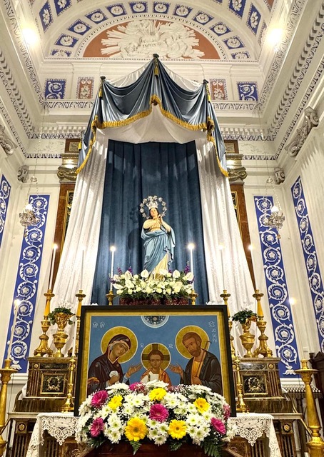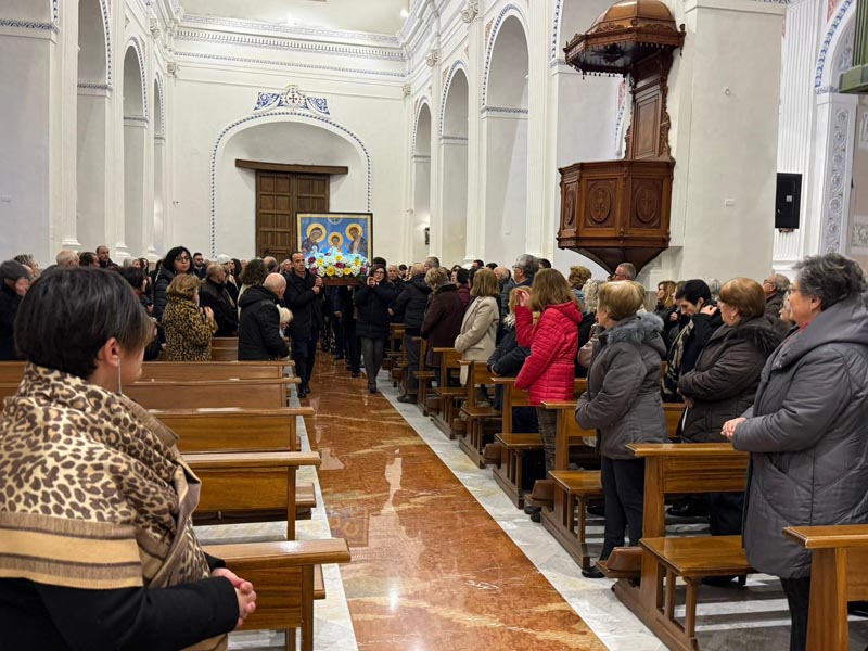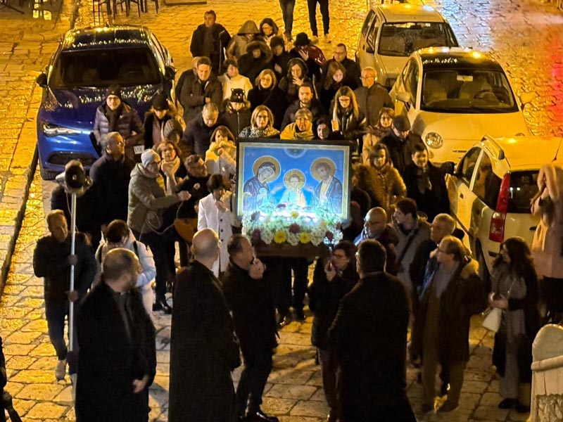 Un corteo del gruppo delle famiglie locali insieme all’equipe diocesana di pastorale familiare partito dalla Chiesa Madonna del Carmelo ha condotto l’icona della Santa Famiglia, il primo di cembre 2024, nella Chiesa Madre di San Giovanni Gemini, dove si è stata celebrata la messa per la sua accoglienza presieduta dal vicario generale don Giuseppe Cumbo con il quale hanno concelebrato don Gero Manganello, direttore del Centro per l’Evangelizzazione e don Gianluca Arcuri parroco della Chiesa Madre. Al termine della celebrazione, inoltre, è stato anche benedetto il presepe di misure quasi reali allestito nella navata laterale.