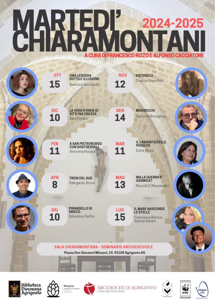 Prendono il via martedì 15 ottobre gli incontri dei “Martedì Chiaramontani 2024-2025”, un viaggio tra letteratura, arte e cultura, nel complesso del seminario arcivescovile di Agrigento. L’iniziativa è organizzata dalla Biblioteca Diocesana di Agrigento e da Hosàytos e si svolgerà nella Sala Chiaramontana del Seminario di Agrigento.