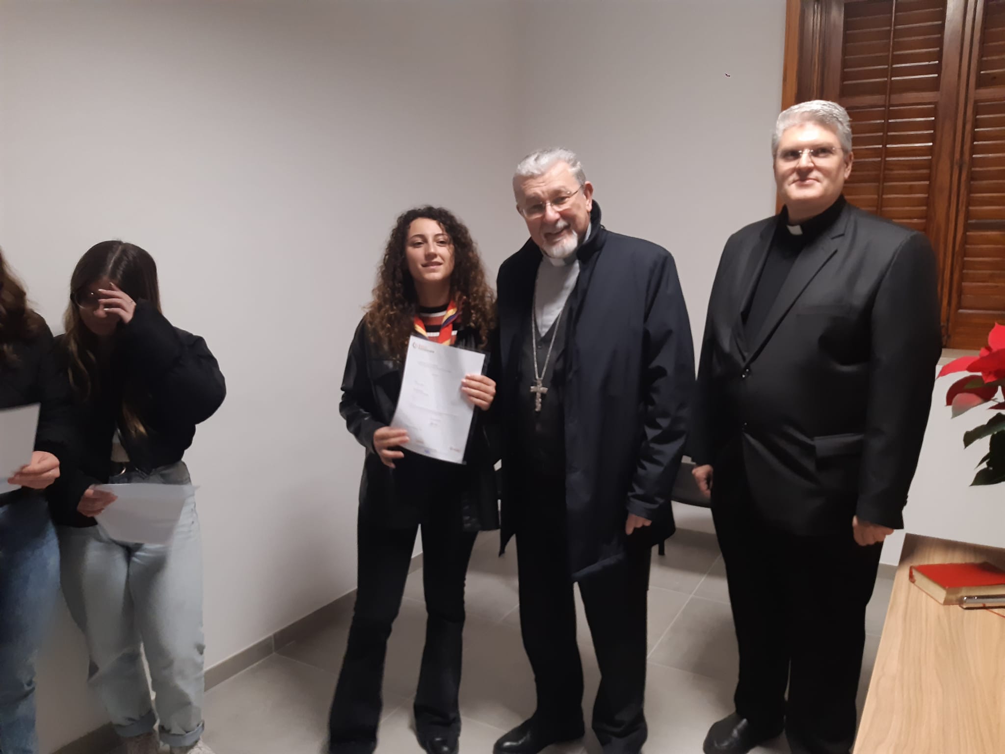 Giovedì 22 dicembre 2022, a Menfi, è stata inaugurata la nuova sede della Caritas Cittadina, recentemente ristrutturata. Al momento erano presenti il direttore della Caritas Diocesana Valerio Landri, l’arciprete di Menfi, don Alessandro di Fede Santangelo, il Clero della città e rappresentanti della comunità ecclesiale e civile. Durante la manifestazione l’Arcivescovo ha consegnato gli attestati agli alunni del Liceo Scientifico “Archimede” e dell’Istituto Tecnico Agrario “Rotolo”, che hanno partecipato con entusiasmo da Volontari alla 26°