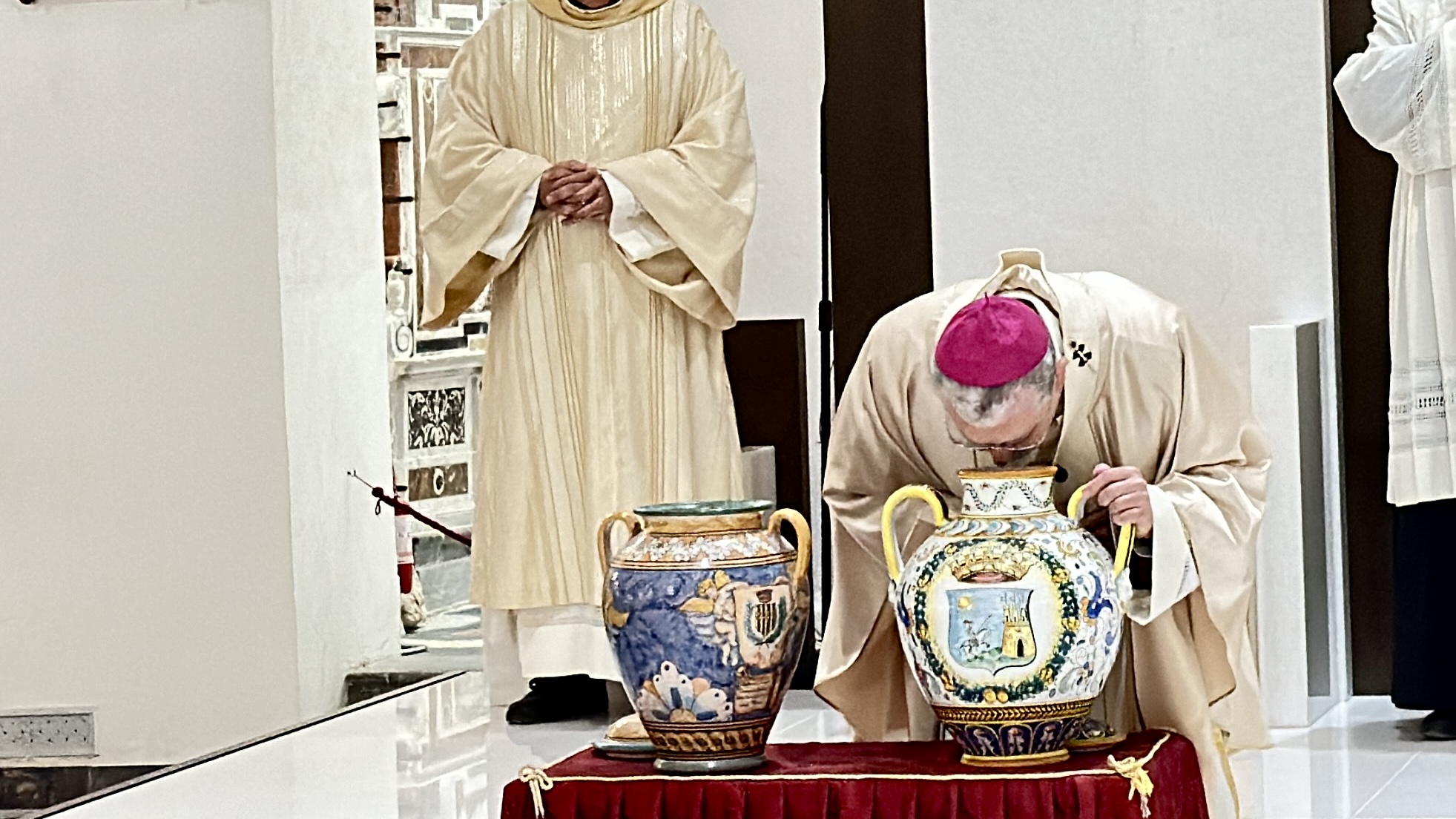 Mercoledì 27 marzo 2024, l’Arcivescovo di Agrigento, mons. Alessandro Damiano, ha celebrato la Messa Crismale nella Basilica Cattedrale San Gerlando. Una liturgia ricca di significati, a partire dal fatto che vede tutta la Chiesa riunita attorno al vescovo, manifestando così la sua multiforme varietà di carismi e vocazioni. Essa è significativa anche perché il vescovo benedice e consacra gli olii santi: il crisma, l’olio dei catecumeni e l’olio degli infermi che al termine della Messa ciascun parroco ha ritirato e che verranno utilizzati durante l’anno liturgico per i battesimi, le cresime, l’unzione dei malati. Anche quest’anno l’olio che è stato consacrato per il per il crisma contiene parte di quello proveniente dalla molitura delle olive del «Giardino della Memoria» luogo della strage di Capaci che gli è stato consegnato nei giorni scorsi dal Questore di Agrigento dott.  Tommaso Palumbo (vedi). Tra le essenze che hanno profumato il crisma anche il «bergamotto» proveniente dalla Diocesi di Locri-Gerace, frutto di una piantagione confiscata alla ‘Ndrangheta. A concelebrare i presbiteri della Chiesa diocesana che, interrogati dal Vescovo, hanno rinnovato le promesse fatte il giorno della loro ordinazione presbiterale come segno di unità con il vescovo e di fedeltà verso l’unzione ricevuta. In vista della Messa crismale, mons. Damiano, ha consegnato al presbiterio una lettera con alcune riflessioni circa l’impegno a cui è chiamato il nostro presbiterio in questo tempo: “Per muoverci dentro i nuovi orizzonti che la complessità ci impone – scrive l’Arcivescovo – siamo chiamati a divenire facilitatori di comunione! Questo impegno non è certamente astratto, ma assume i volti e le storie del nostro presbiterio, delle nostre comunità e della nostra terra, con tutte le gioie e le fatiche, le luci e le ombre, le speranze e le contraddizioni che si portano dentro. Essere facilitatori di comunione, pertanto, lì dove Dio, che ordina e guida la storia, ci ha posti!”