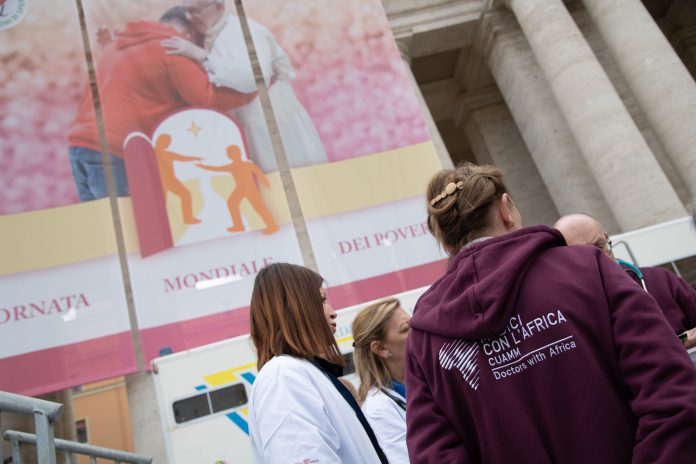 La violenza provocata dalle guerre mostra con evidenza quanta arroganza muove chi si ritiene potente davanti agli uomini, mentre è miserabile agli occhi di Dio. Quanti nuovi poveri produce questa cattiva politica fatta con le armi, quante vittime innocenti! Eppure, non possiamo indietreggiare. I discepoli del Signore sanno che ognuno di questi “piccoli” porta impresso il volto del Figlio di Dio, e ad ognuno deve giungere la nostra solidarietà e il segno della carità cristiana. «Ogni cristiano e ogni comunità sono chiamati ad essere strumenti di Dio per la liberazione e la promozione dei poveri, in modo che essi possano integrarsi pienamente nella società; questo suppone che siamo docili e attenti ad ascoltare il grido del povero e soccorrerlo» (Esort. ap. Evangelii gaudium, 187).