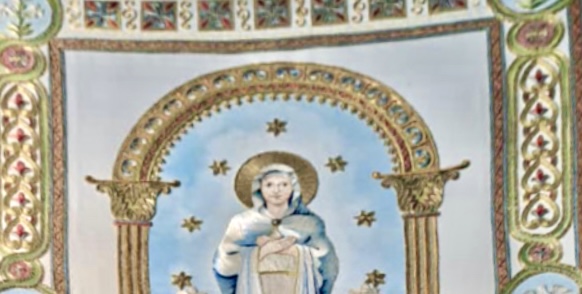 un magnifico stendardo devozionale dedicato alla Vergine Maria Immacolata.