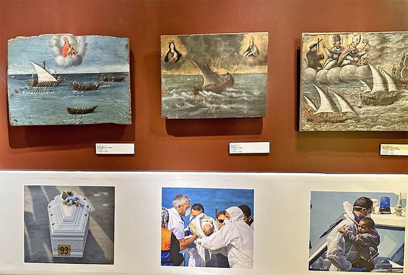 È stata inaugurata e presentata venerdì 30 giugno 2023, nella Sala degli ex voto storici del Museo Diocesano di Agrigento l’installazione “Thalassa. Dagli ex voto storici alla tragedia umana”, evento promosso dal Mudia per ricordare il X anniversario della visita di Papa Francesco a Lampedusa. Gli  ex voto storici sono posti in relazione e a confronto con  le foto di Massimo Palamenghi, Fabio Peonia e Giuseppe Spoto che diventano la rappresentazione contemporanea dell’invocazione per la salvezza impressa nelle tavolette votive del Mudia, invocazione in alcuni casi raggiunta, in altri casi tragicamente perduta. Tra passato e presente quelle scene dipinte o fotografate trovano la naturale conclusione nel video con foto e audio con la voce di Papa Francesco, con brani dell’omelia pronunciata durante la visita a Lampedusa nel 2013.