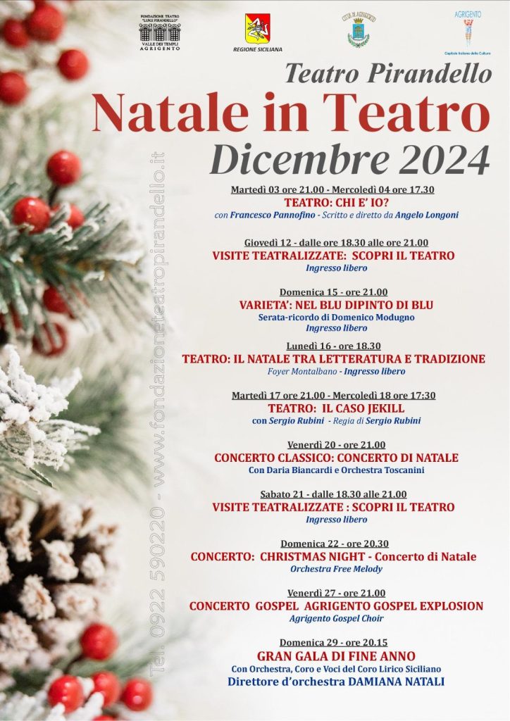 Il Teatro Pirandello di Agrigento presenta la programmazione natalizia “Natale in Teatro”, un mese di eventi  che spaziano tra teatro, musica e cultura. Un’opportunità per vivere appieno l’atmosfera natalizia nel cuore della città, con appuntamenti adatti a tutte le età.