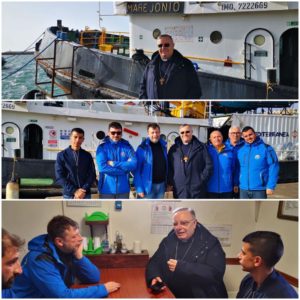 “Questa mattina (domenica 22 dicembre per chi legge ndr) è arrivato in visita pastorale a bordo di nave Mare Jonio al porto di Licata, il cardinale arcivescovo di Agrigento Francesco Montenegro”. Lo scrive su Facebook Mediterranea Saving Humans, la rete delle associazioni italiane che con nave Mare Jonio e nave Alex nel corso del 2019 ha fatto azioni di monitoraggio nel Mediterraneo centrale salvando centinaia di persone in pericolo di vita, e le cui imbarcazioni sono sotto sequestro da mesi nel porto siciliano. Accompagnato dal comandante della Capitaneria di porto di Licata, Fabrizio Pilogallo, l’arcivescovo ha voluto incontrare il capo missione Luca Casarini e tutto l’equipaggio per dei particolari auguri di Natale: “Io sono con voi – ha detto don Francesco – e prego affinché la Mare Jonio possa prendere presto il mare nuovamente, per aiutare le nostre sorelle e i nostri fratelli che soffrono e rischiano di morire”.