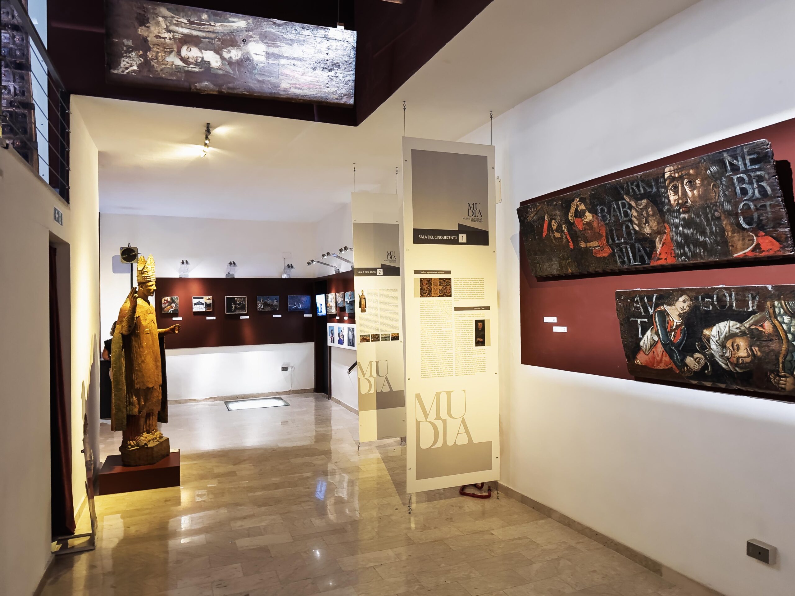 Al visitatore del Museo diocesano, nella sala dedicata a San Gerlando con una sua antica statua lignea, i curatori propongono la giustapposizione di quadri raffiguranti gli ex voto e una tavola che, proveniente dal soffitto ligneo della Cattedrale, propone il primo piano di Nebrot o Nimrod. Il personaggio biblico, l’inizio del suo regno fu Babele, crede che persino il cielo sia a sua portata di mano: «Egli fu – si legge nel libro della Genesi – il primo potente sulla terra, un potente cacciatore davanti al Signore» (cfr. Gen 10, 8-9).