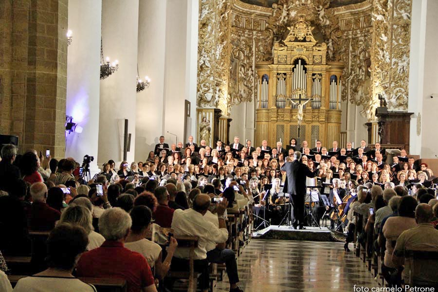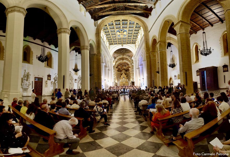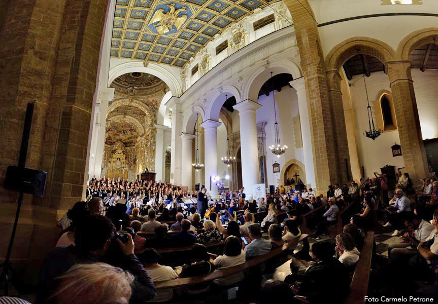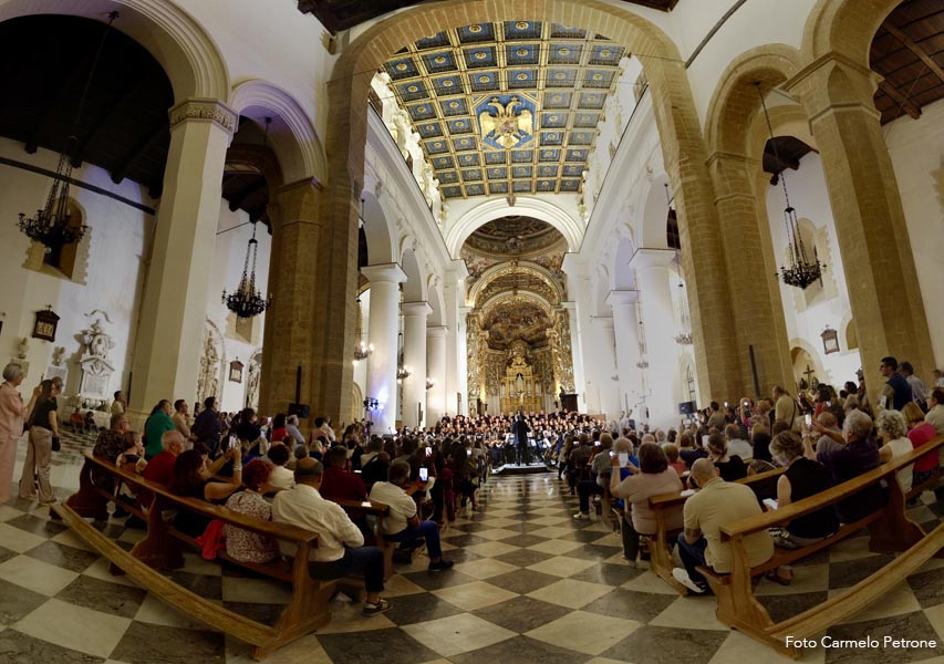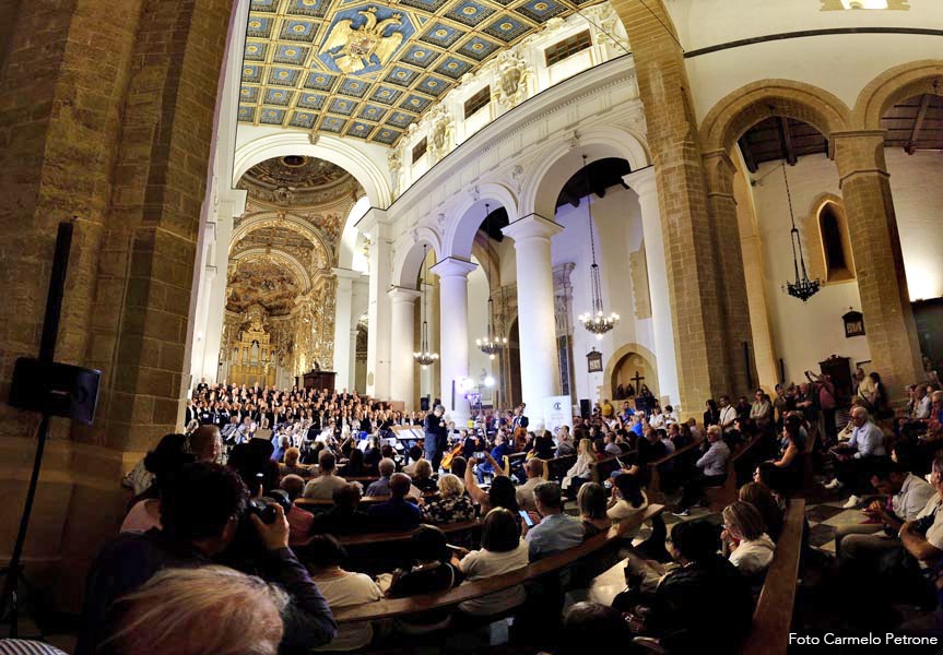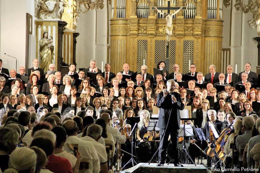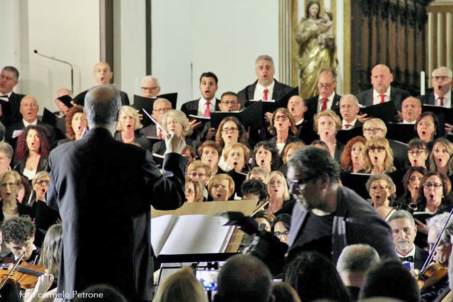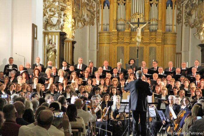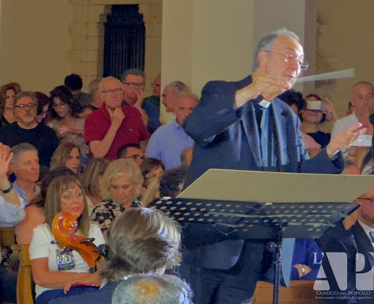Un “monumentale” concerto nella monumentale Cattedrale normanna che ha visto protagonista Mons. Marco Frisina dirigere un coro di ben 200 coristi provenienti da Cori Parrocchiali e non dell’Arcidiocesi di Agrigento, aderenti alla Federcori, presieduta da Salvatore Di Blasi ed accompagnati dall’ Orchestra Bequadro di Bagheria. Sotto la guida di Frisina, i duecento coristi e l’orchesta hanno dato vita a una esperienza corale capace di toccare le corde più intime dei presenti. Il repertorio, interamente dedicato alla musica sacra, ha spaziato tra brani tradizionali e composizioni originali del Maestro, esaltando la capacità della musica di elevare lo spirito e unire le persone in un’esperienza condivisa di fede, cultura e bellezza. Al termine del concerto Monsignor Frisina ha condiviso alcune riflessioni sulla musica sacra oggi; che non è solo arte; è preghiera che si fa suono (non è mancata, infatti, la preghiera e l’intonazione attraverso il canto per la pace nel mondo), è un ponte tra l’umano e il divino e in un mondo sempre più frenetico, la musica sacra ci offre un’oasi di pace, un momento per ritrovare noi stessi e connetterci con qualcosa di più grande. Aver visto e sentito, nella giornata della musica… , tutti quei coristi e musicisti unite da un’unica passione è stata la dimostrazione più tangibile del potere aggregante della musica. Insomma un grande evento musicale e, per non pochi, anche un’autentica esperienza spirituale che ha ribadito con forza il ruolo insostituibile della musica sacra nel panorama culturale e spirituale contemporaneo ed ha ricordato a tutti come la bellezza possa essere un veicolo privilegiato per la trascendenza e la comunione.