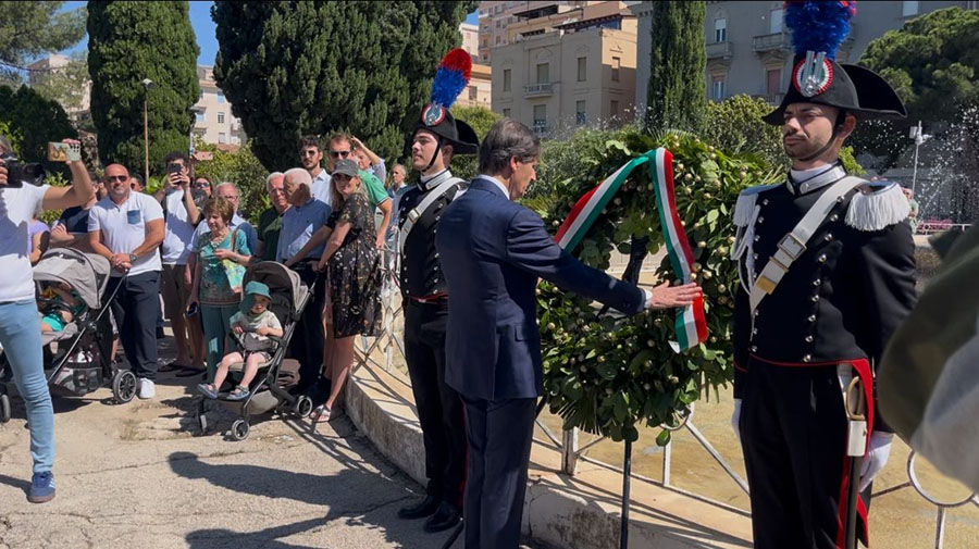 A Villa Bonfiglio, il Prefetto Caccamo, accompagnato dal Comandante Militare Esercito Sicilia Gen. Brig. Francesco Principe, dal Sindaco Franco Miccichè, dal Presidente del Libero Consorzio Comunale Giuseppe Pendolino e dalle altre Autorità provinciali, ha deposto una corona d’alloro ai Caduti per la Patria.